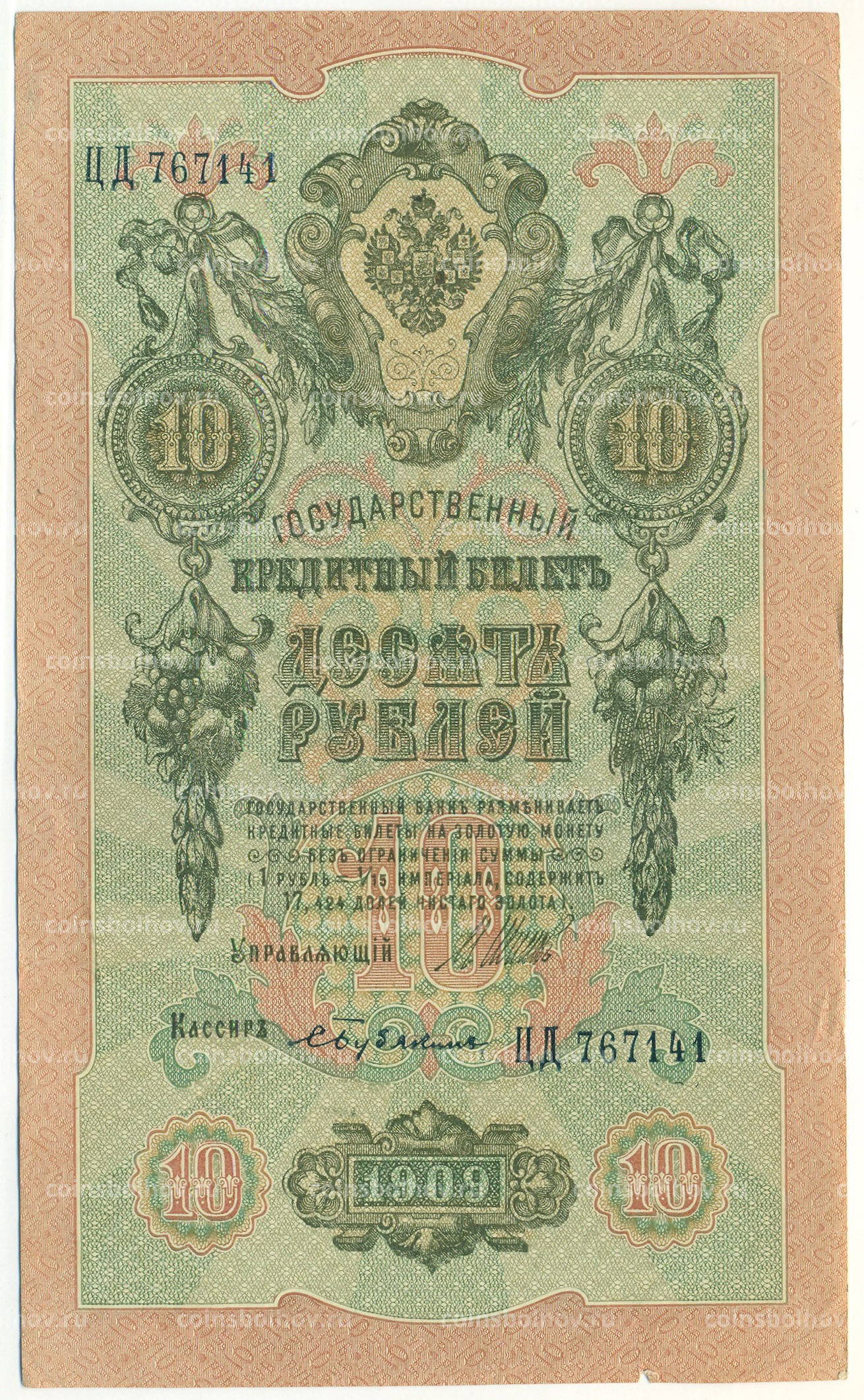 Банкнота 10 рублей 1909 года Шипов / Бубякин