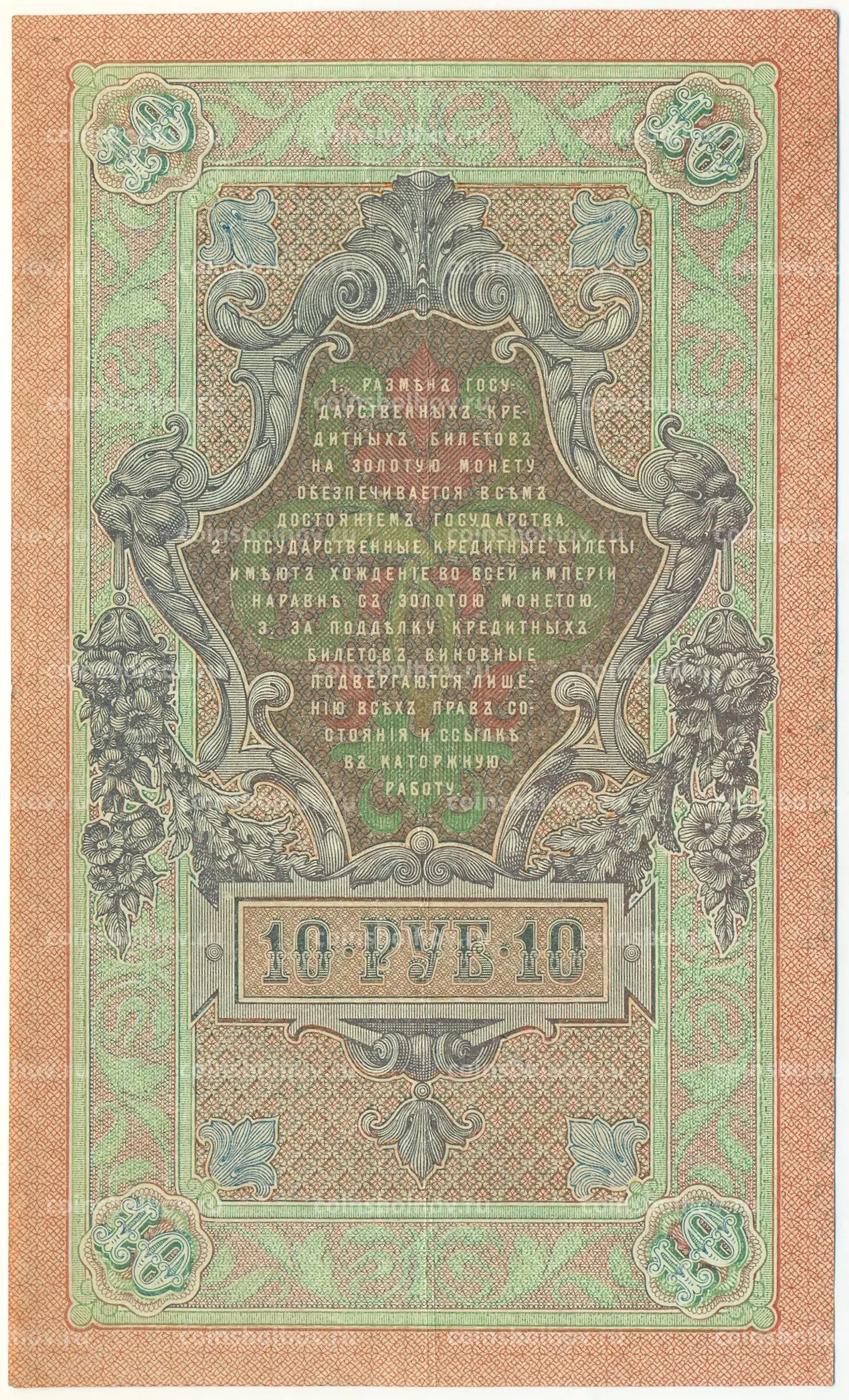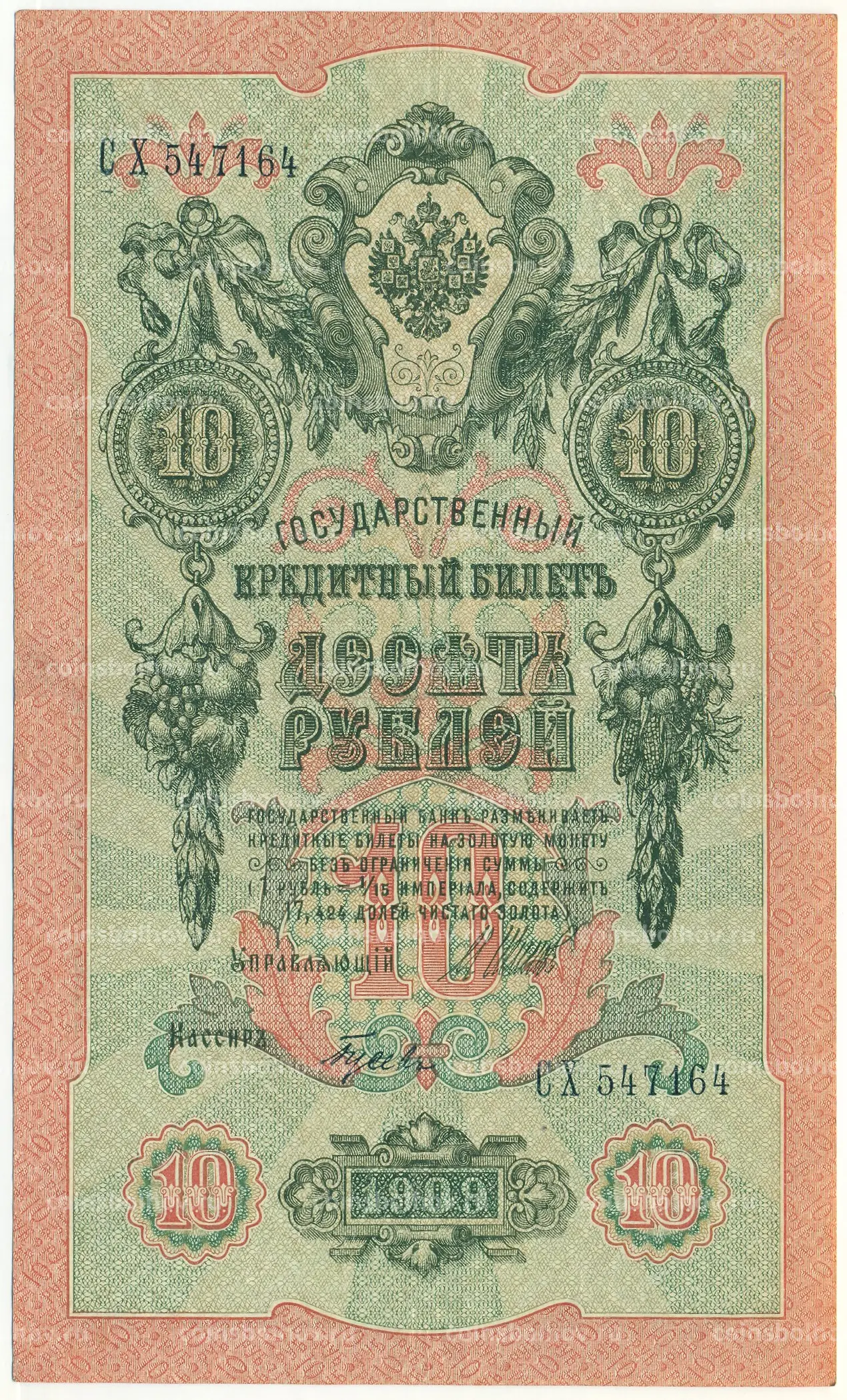 Банкнота 10 рублей 1909 года Шипов / Гусев