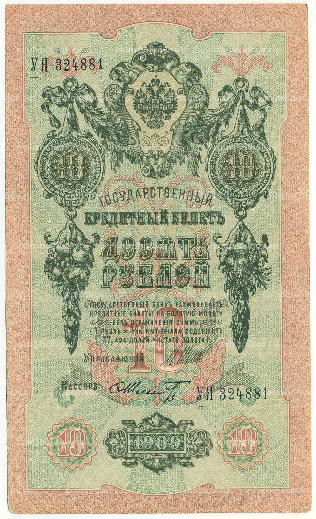 Банкнота 10 рублей 1909 года Шипов / Шмидт
