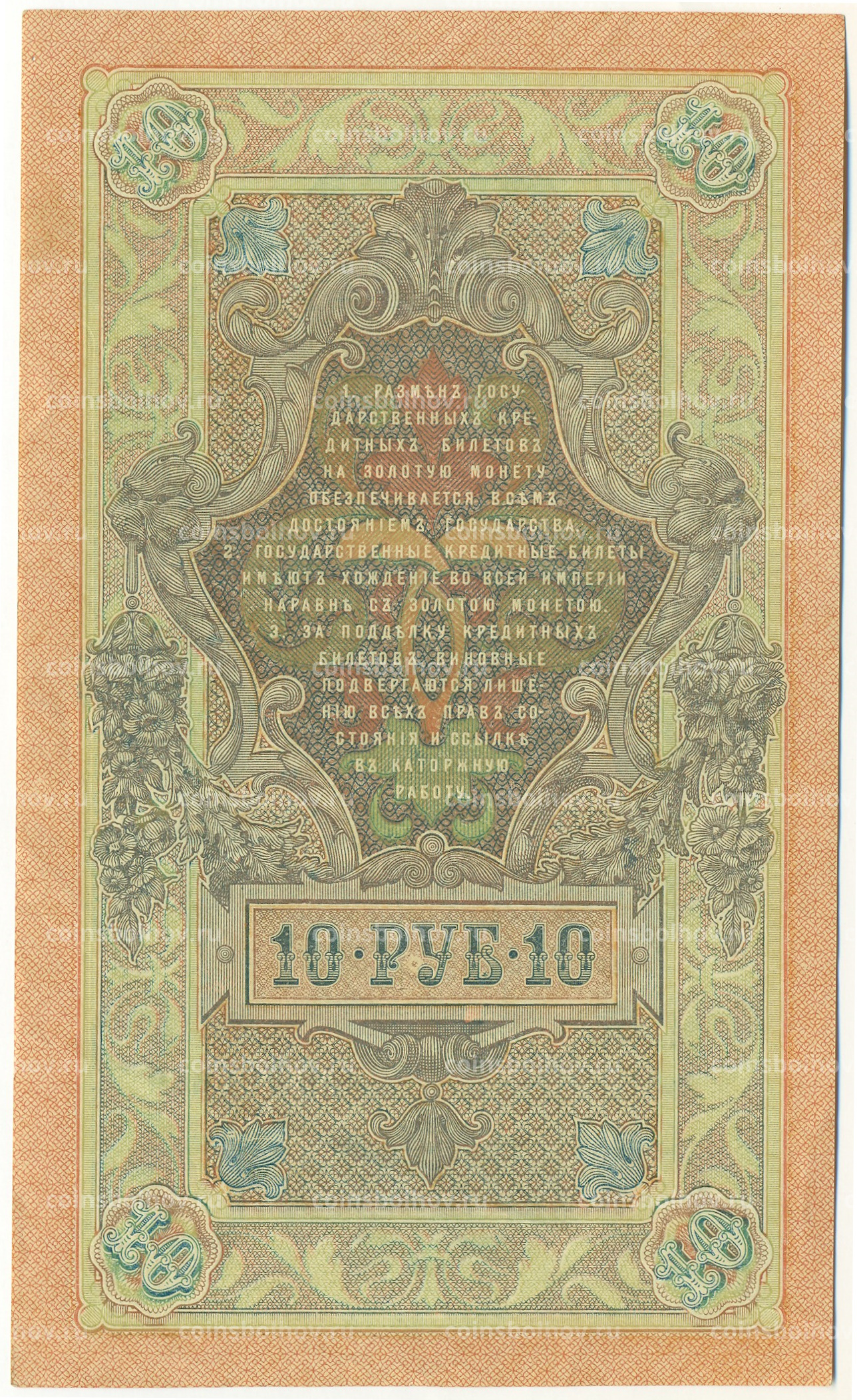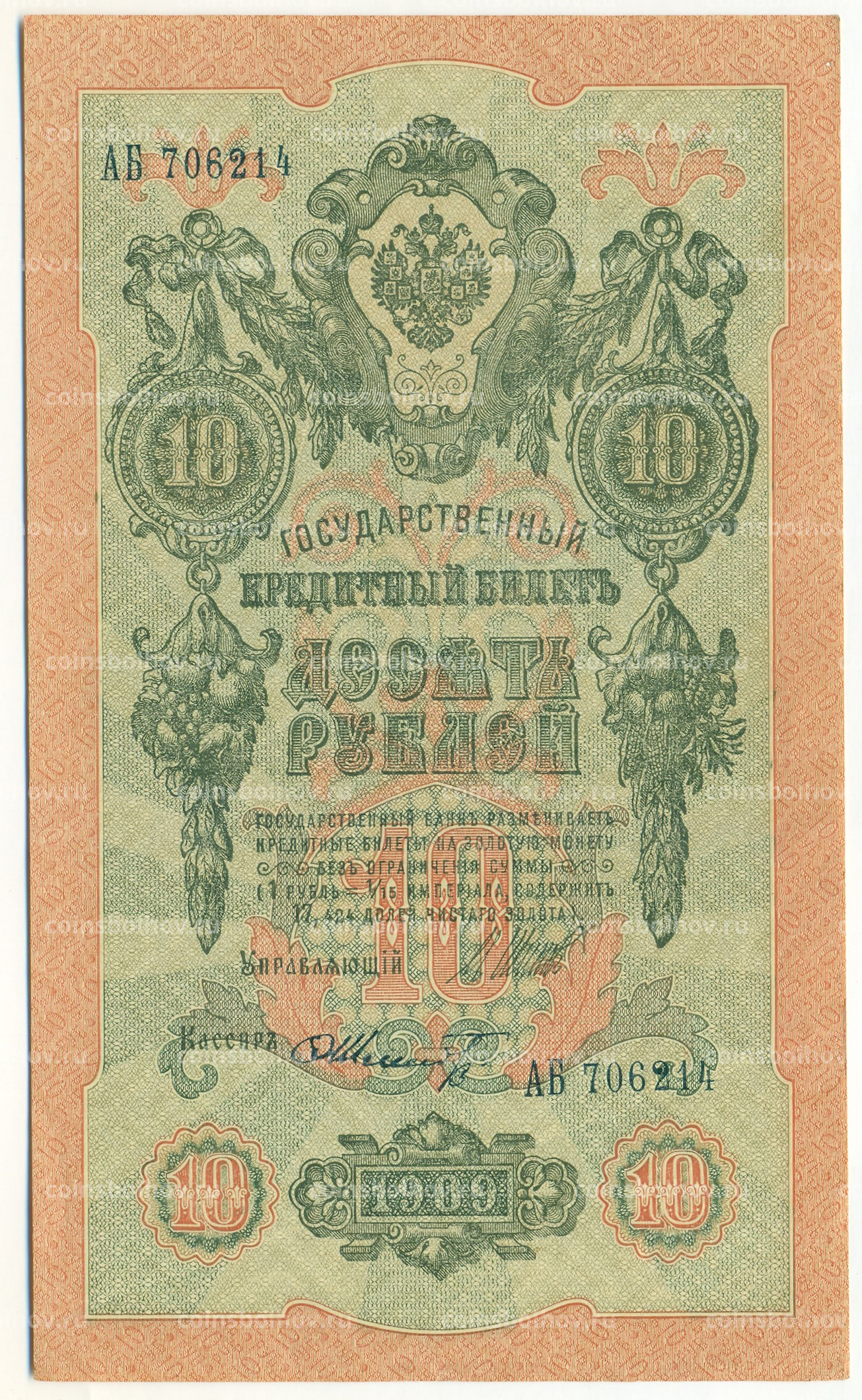 Банкнота 10 рублей 1909 года Шипов / Шмидт