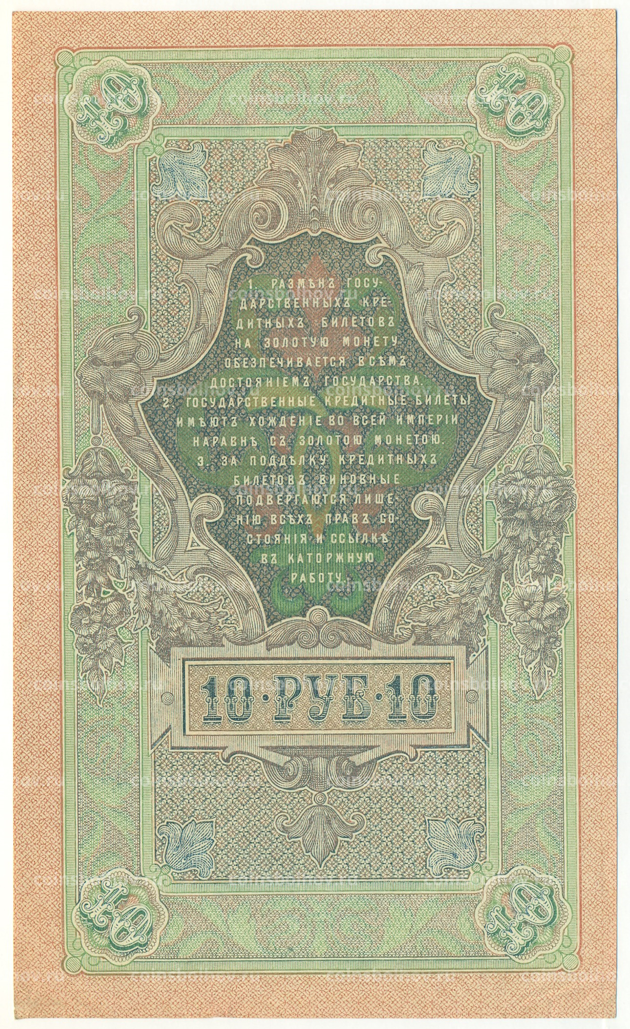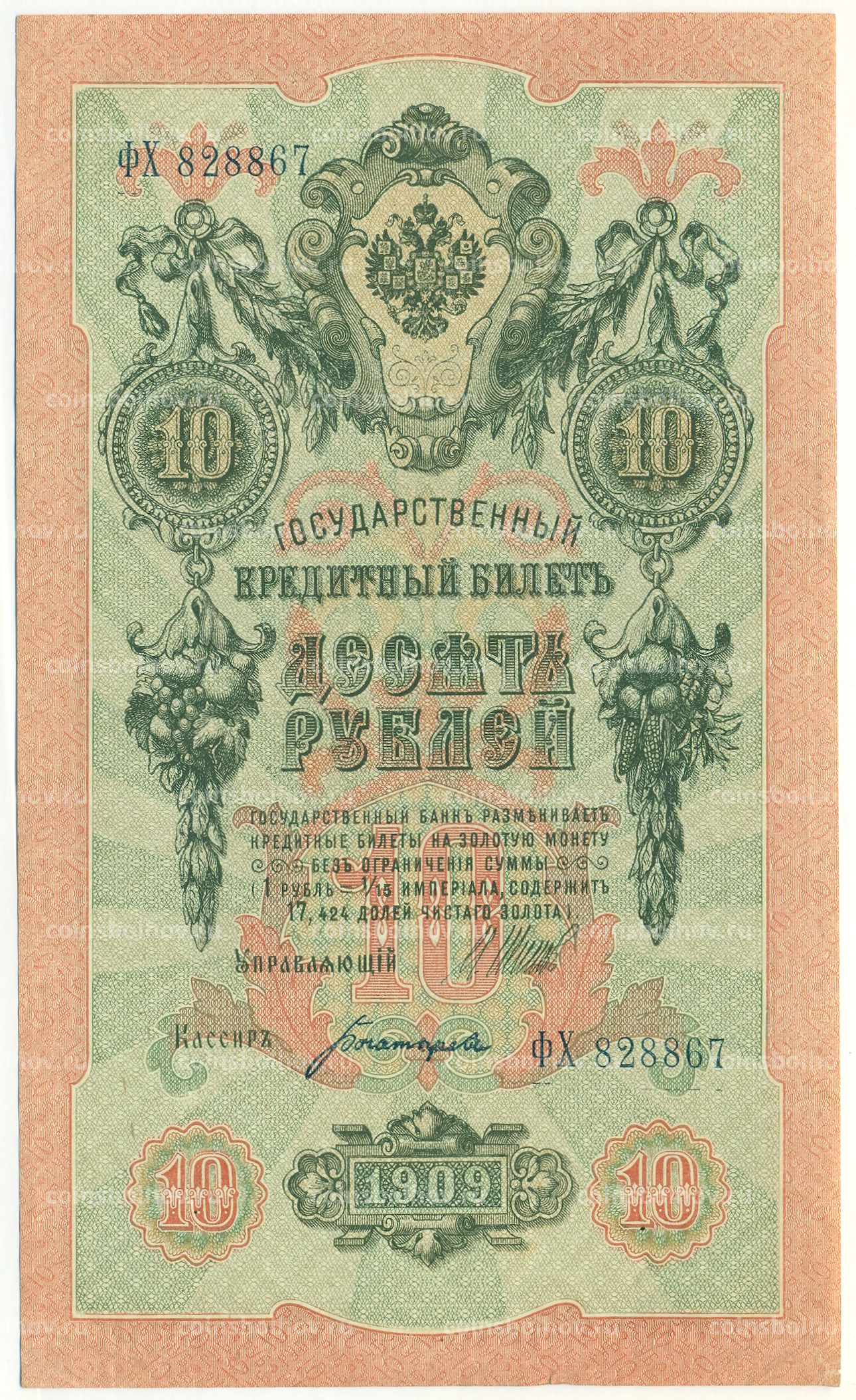 Банкнота 10 рублей 1909 года Шипов / Богатырев
