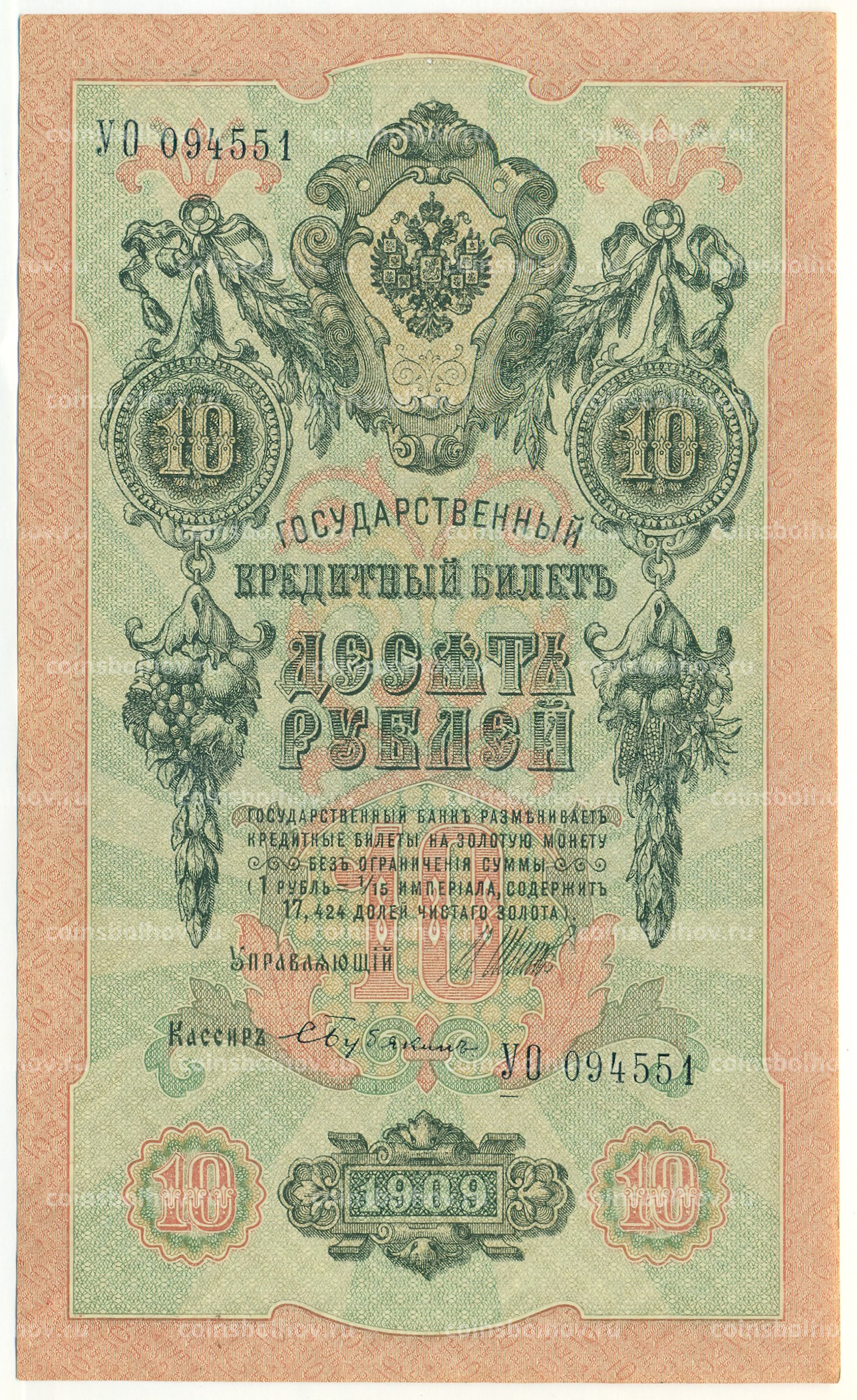 Банкнота 10 рублей 1909 года Шипов / Бубякин