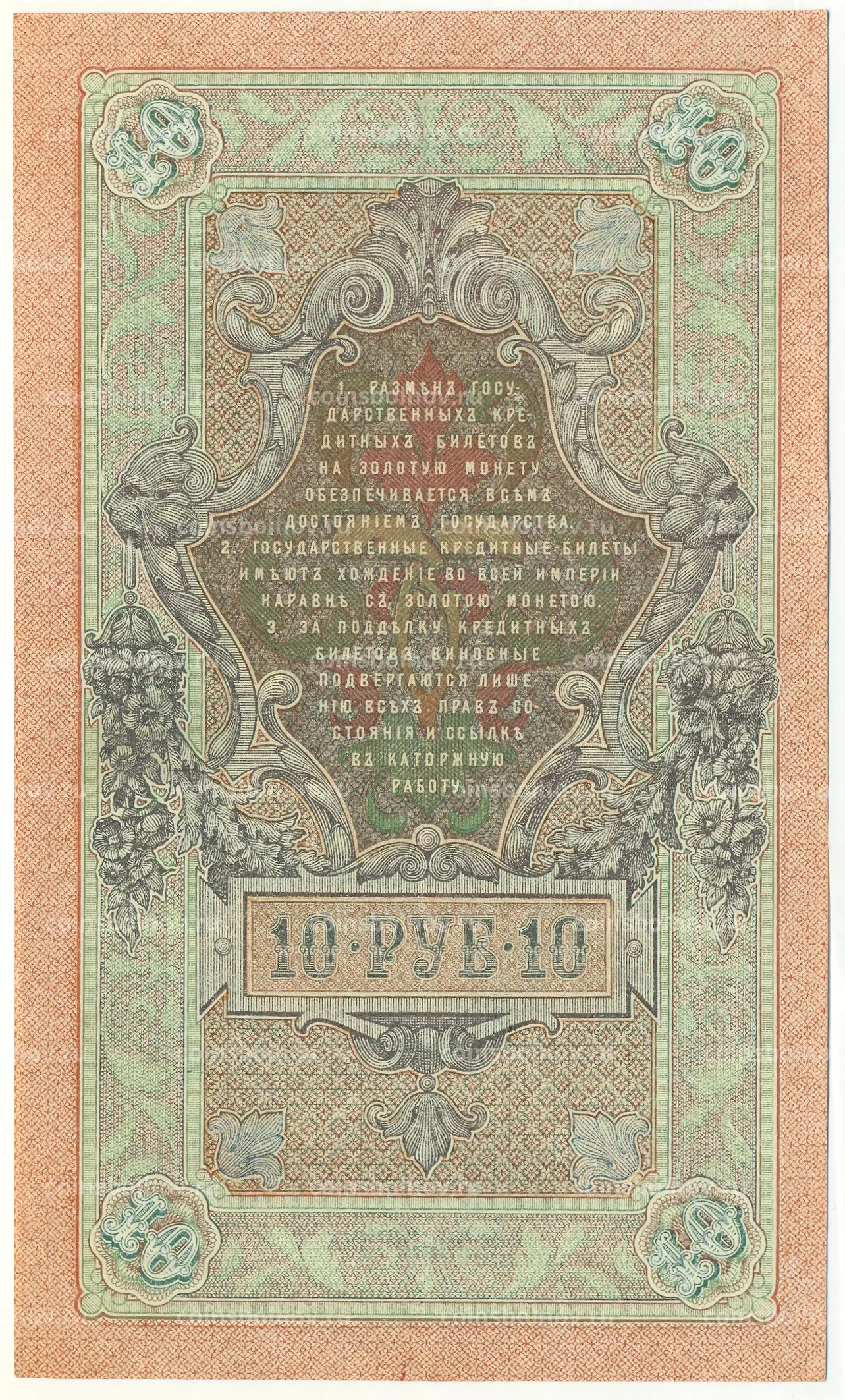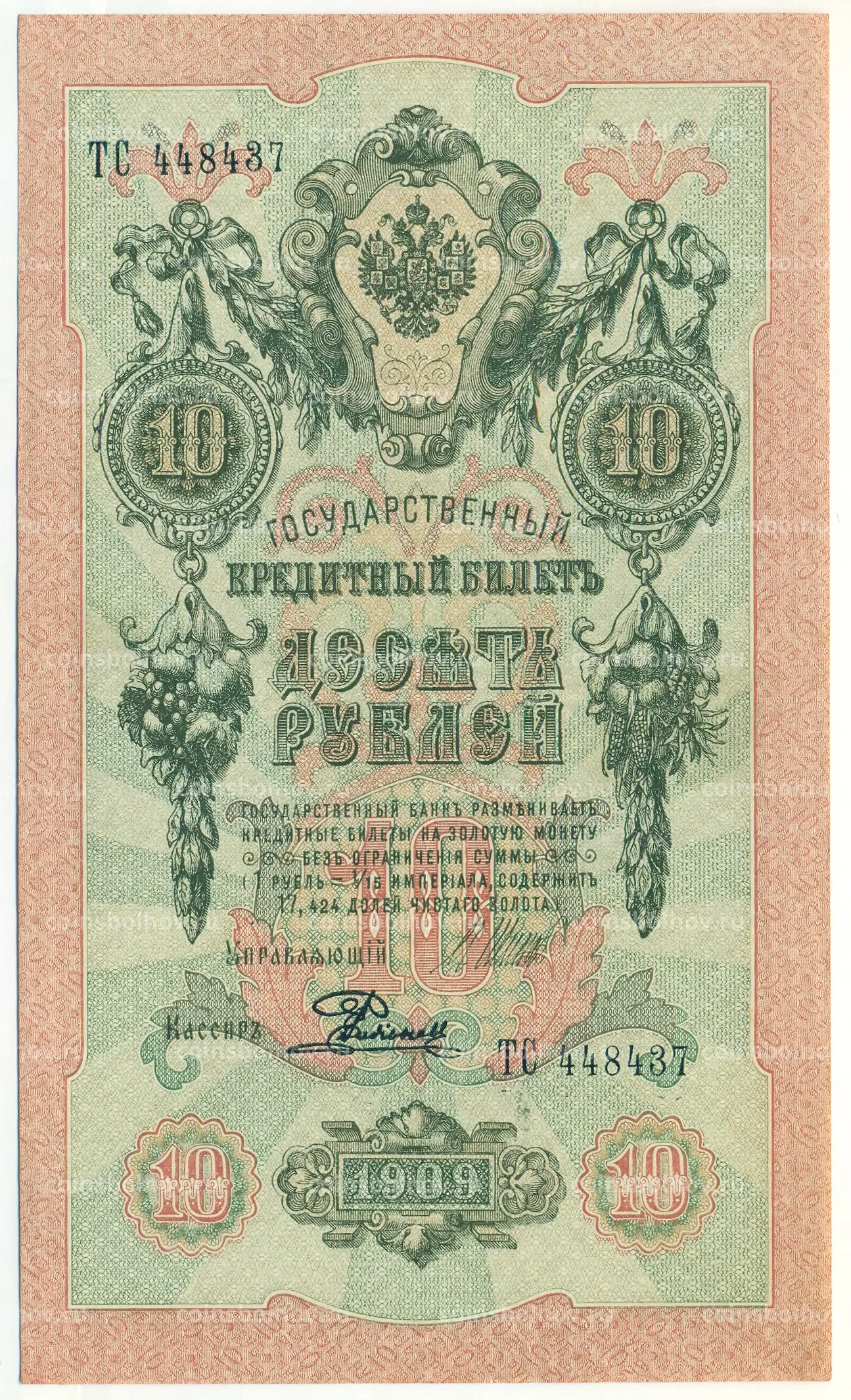 Банкнота 10 рублей 1909 года Шипов / Родионов