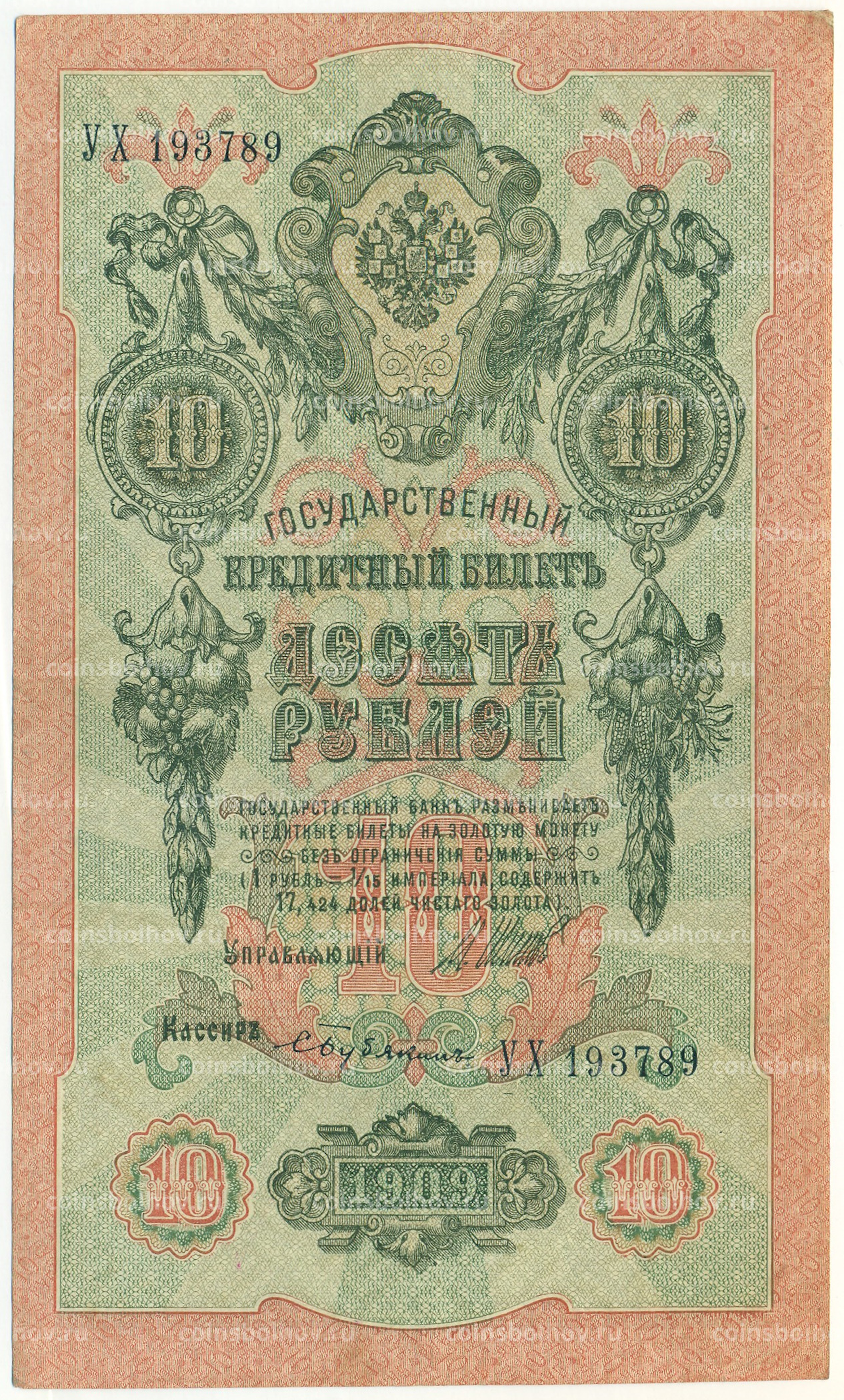 Банкнота 10 рублей 1909 года Шипов / Бубякин