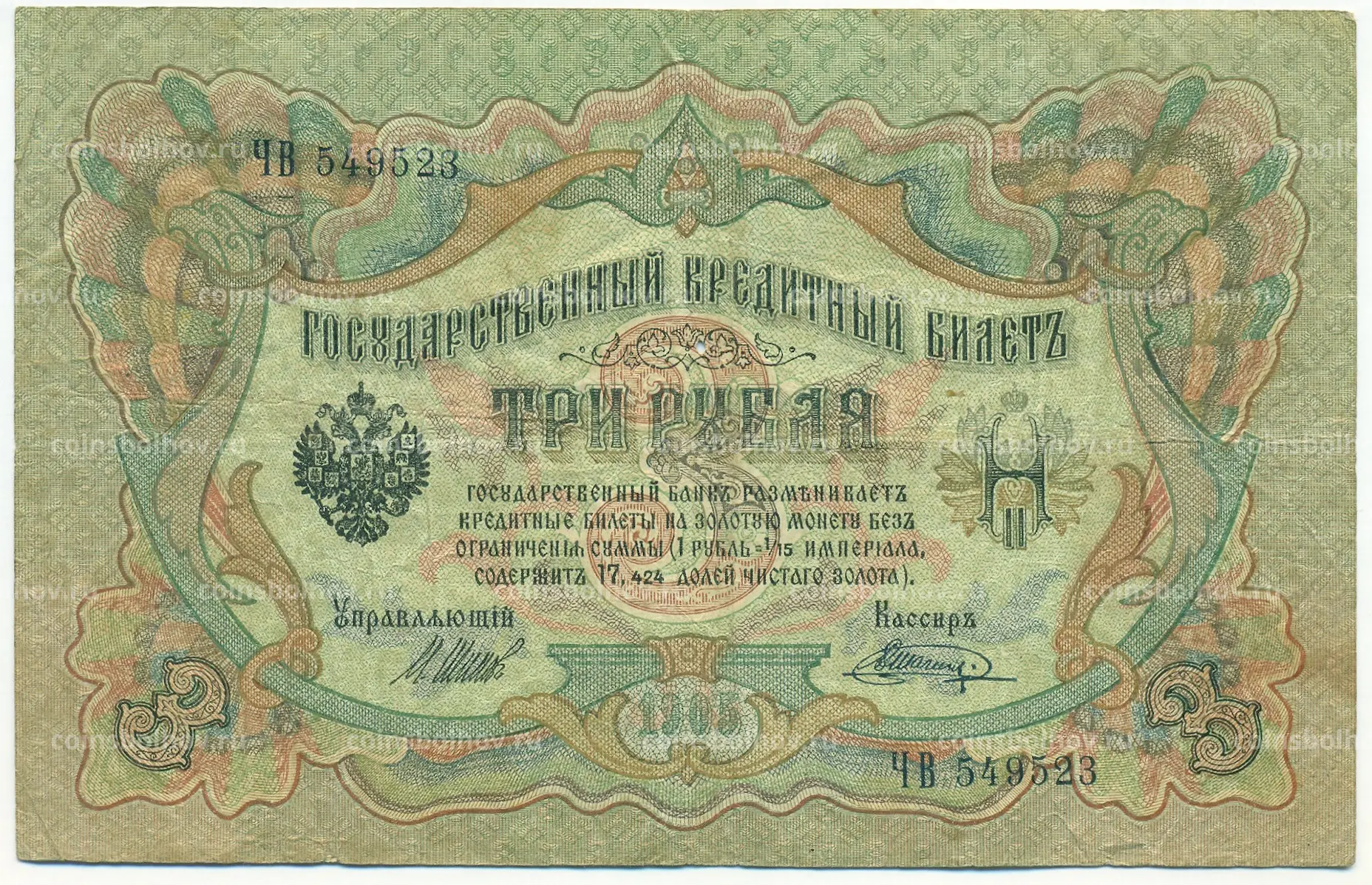 Банкнота 3 рубля 1905 года Шипов / Шагин