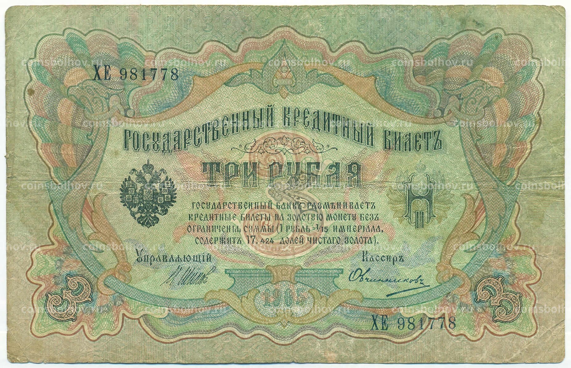 Банкнота 3 рубля 1905 года Шипов / Овчинников