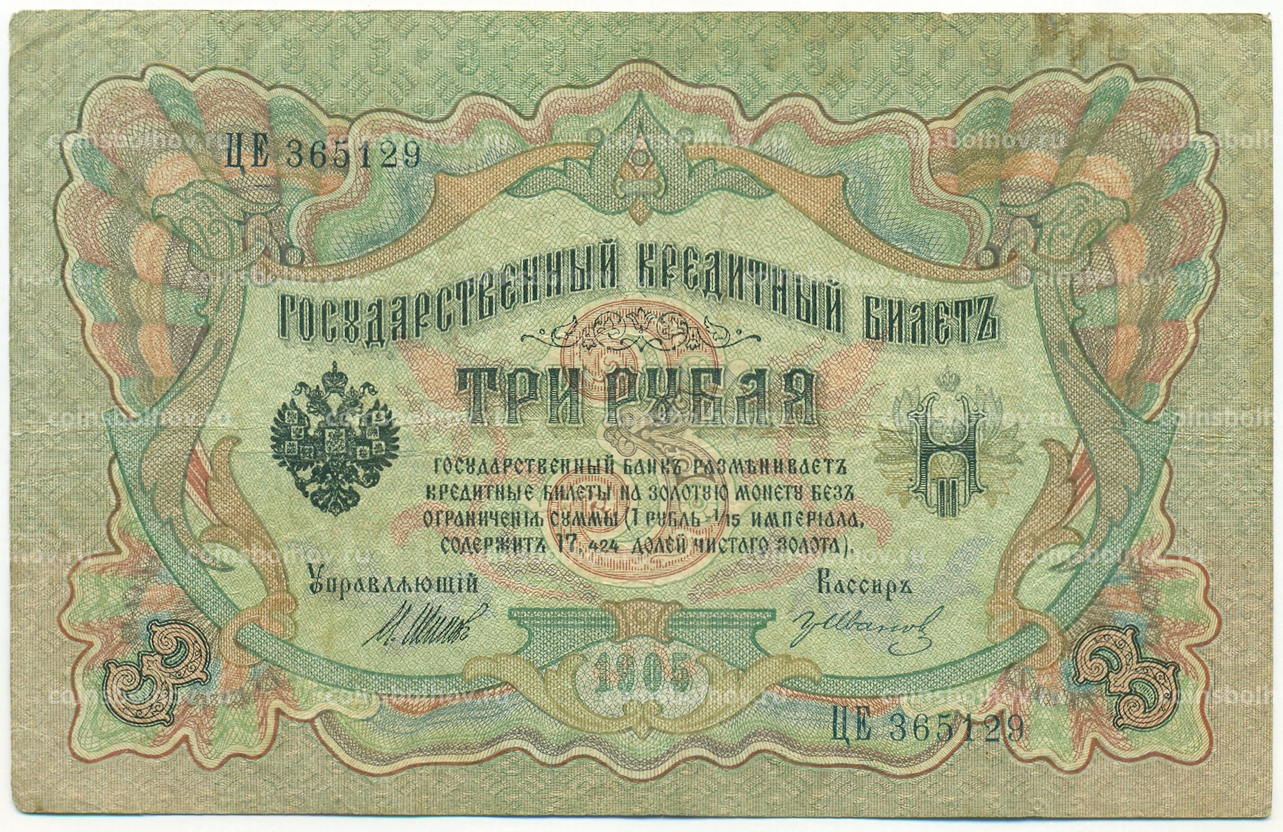Банкнота 3 рубля 1905 года Шипов / Иванов