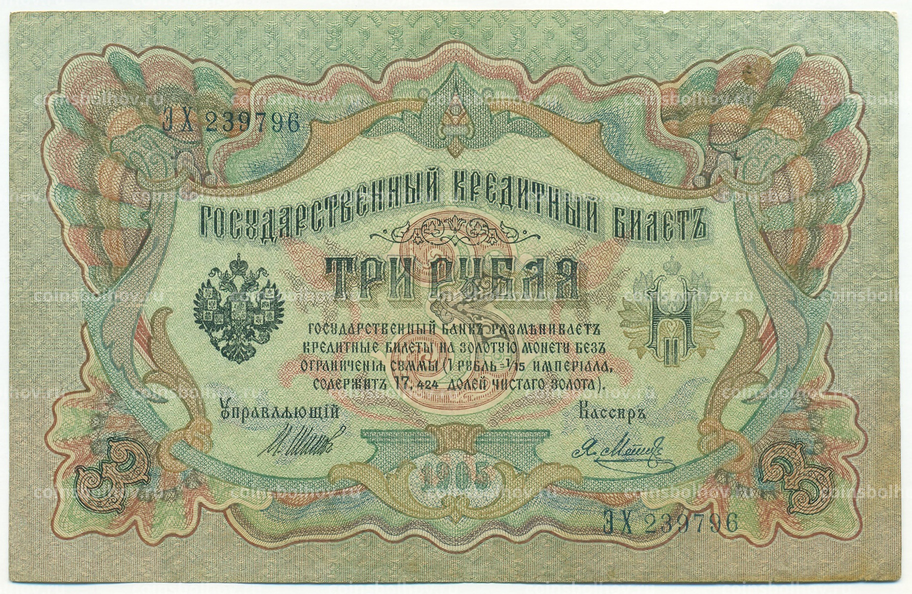 Банкнота 3 рубля 1905 года Шипов / Метц