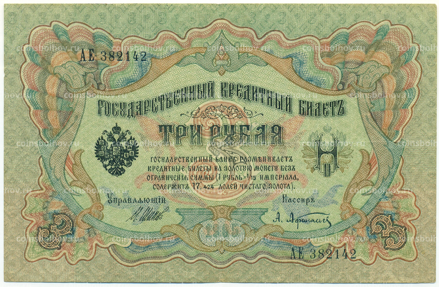 Банкнота 3 рубля 1905 года Шипов / Афанасьев