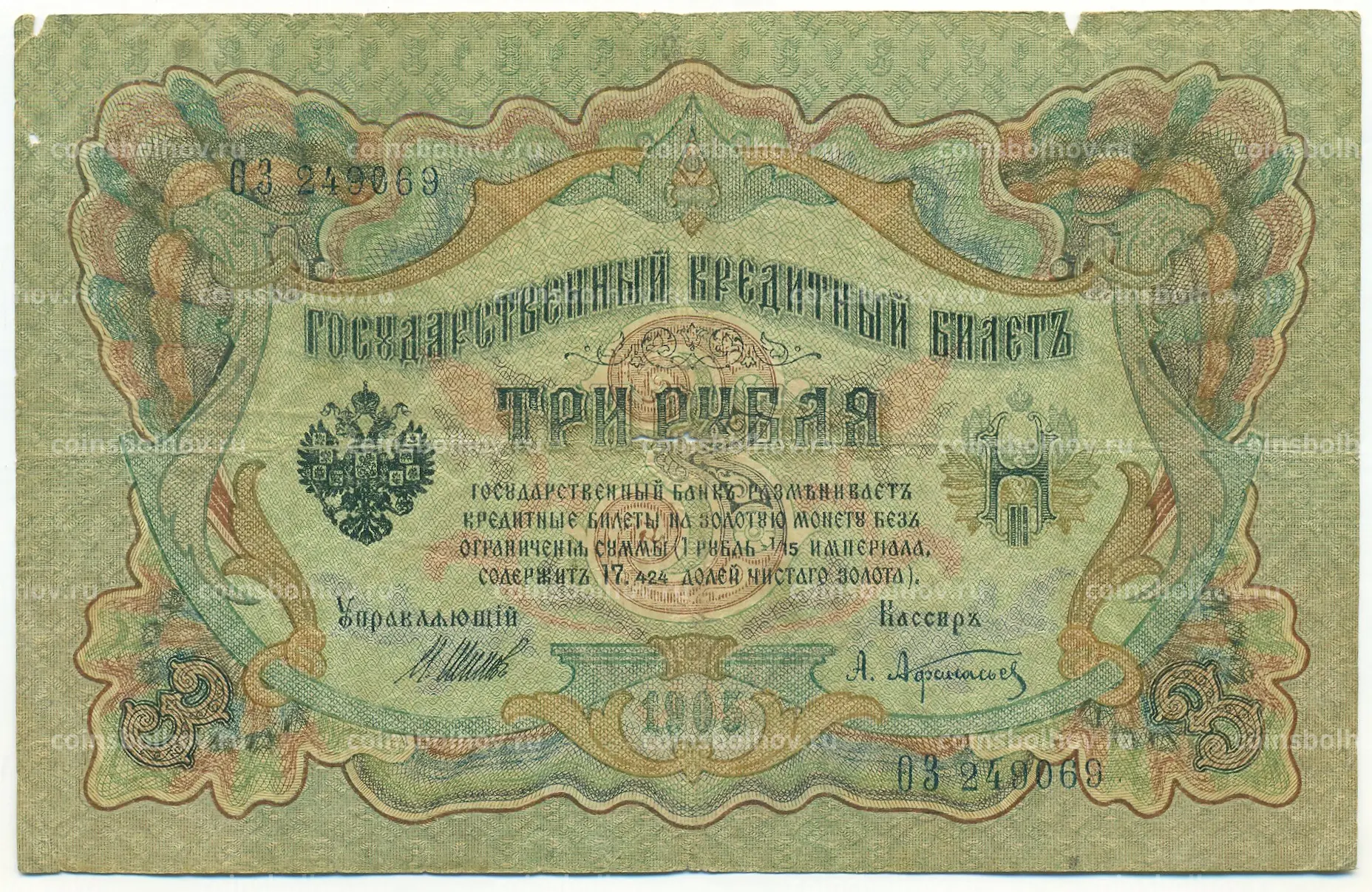Банкнота 3 рубля 1905 года Шипов / Афанасьев