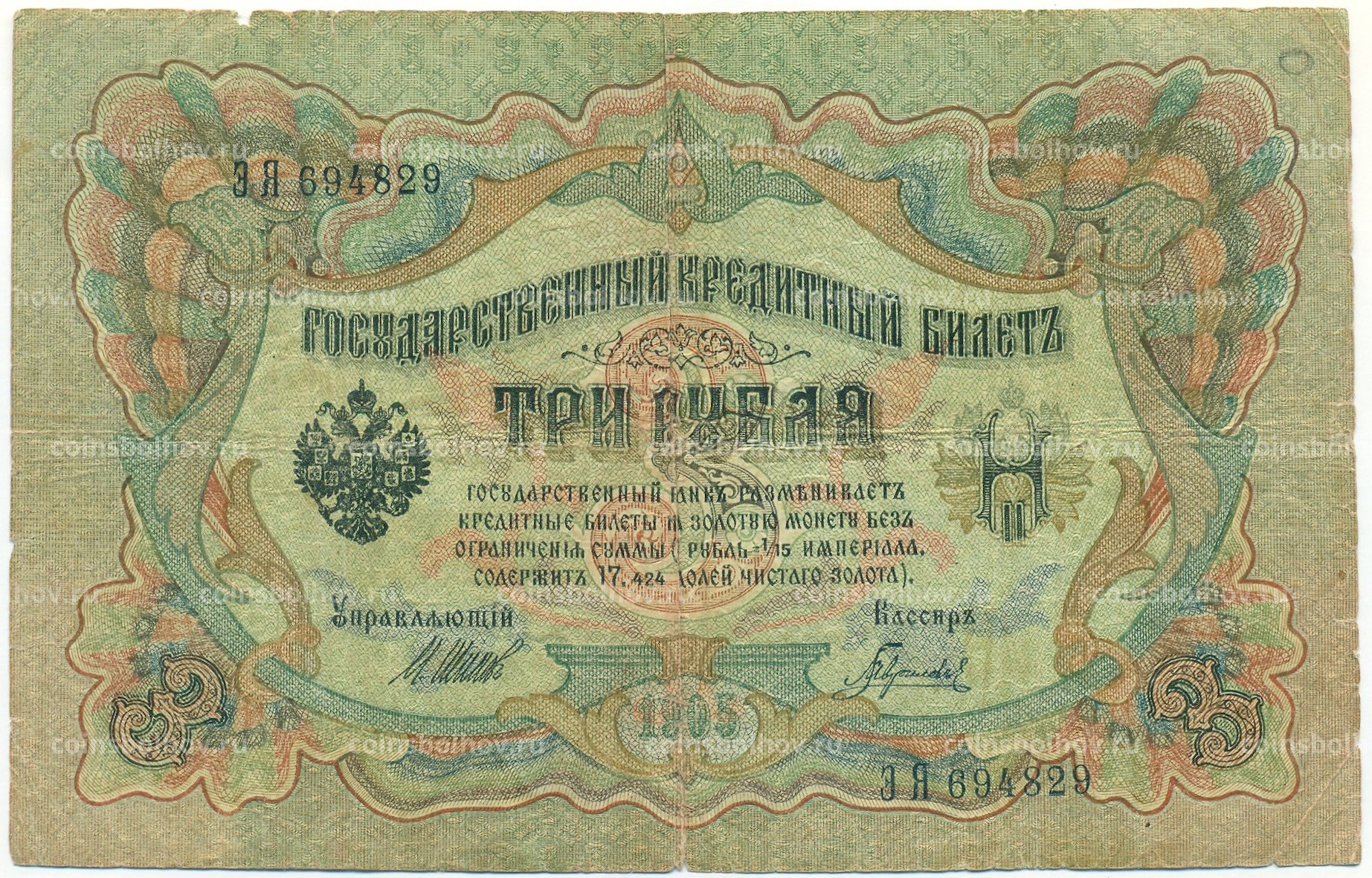 Банкнота 3 рубля 1905 года Шипов / Гаврилов