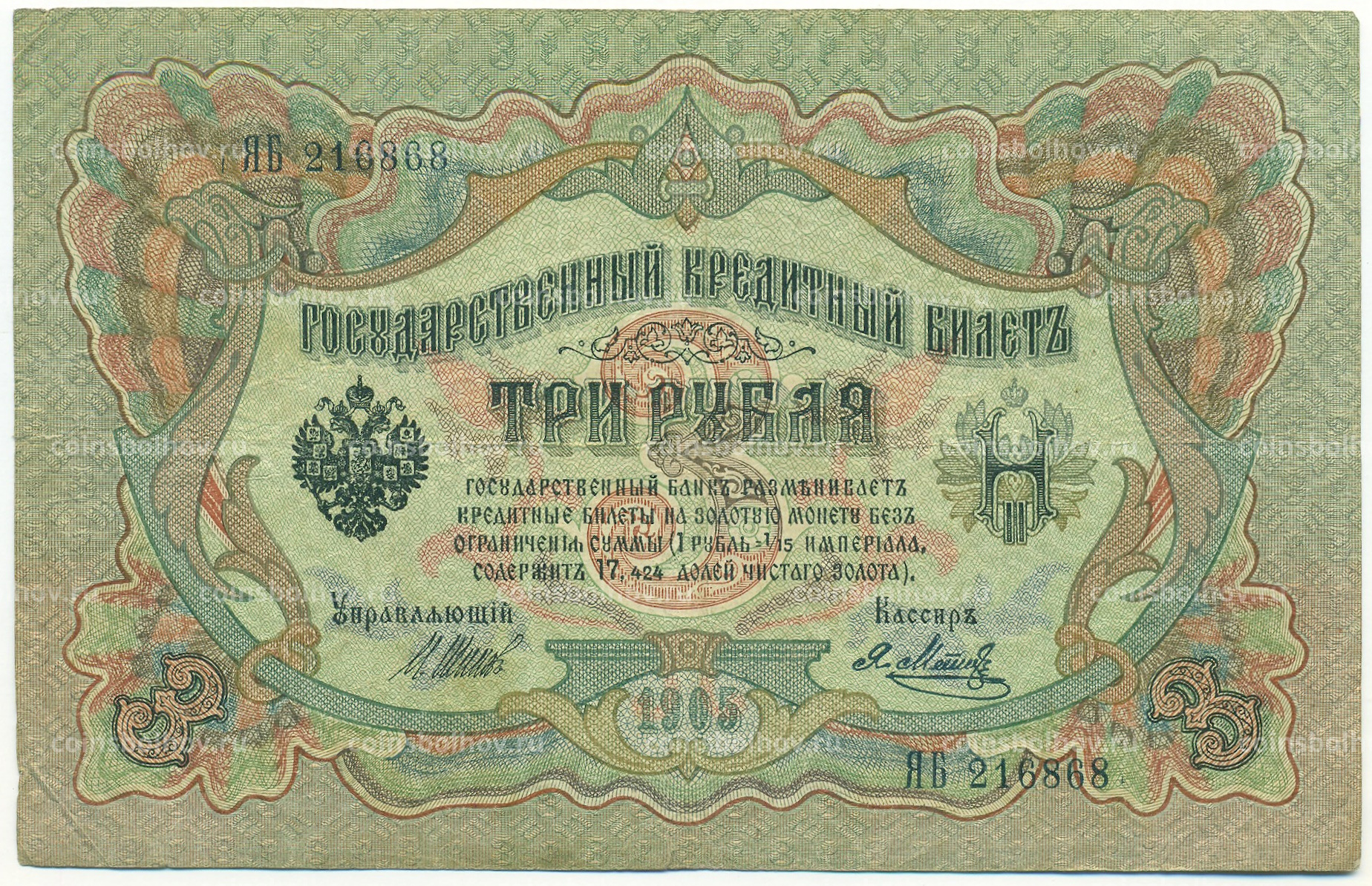 Банкнота 3 рубля 1905 года Шипов / Метц