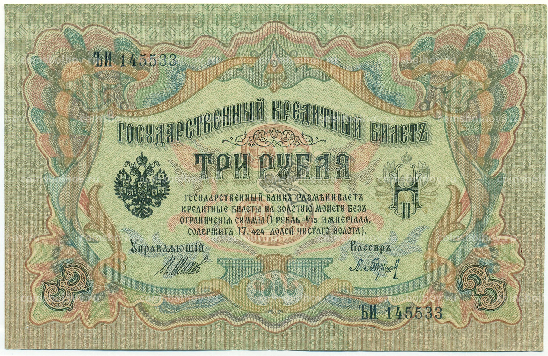 Банкнота 3 рубля 1905 года Шипов / Барышев