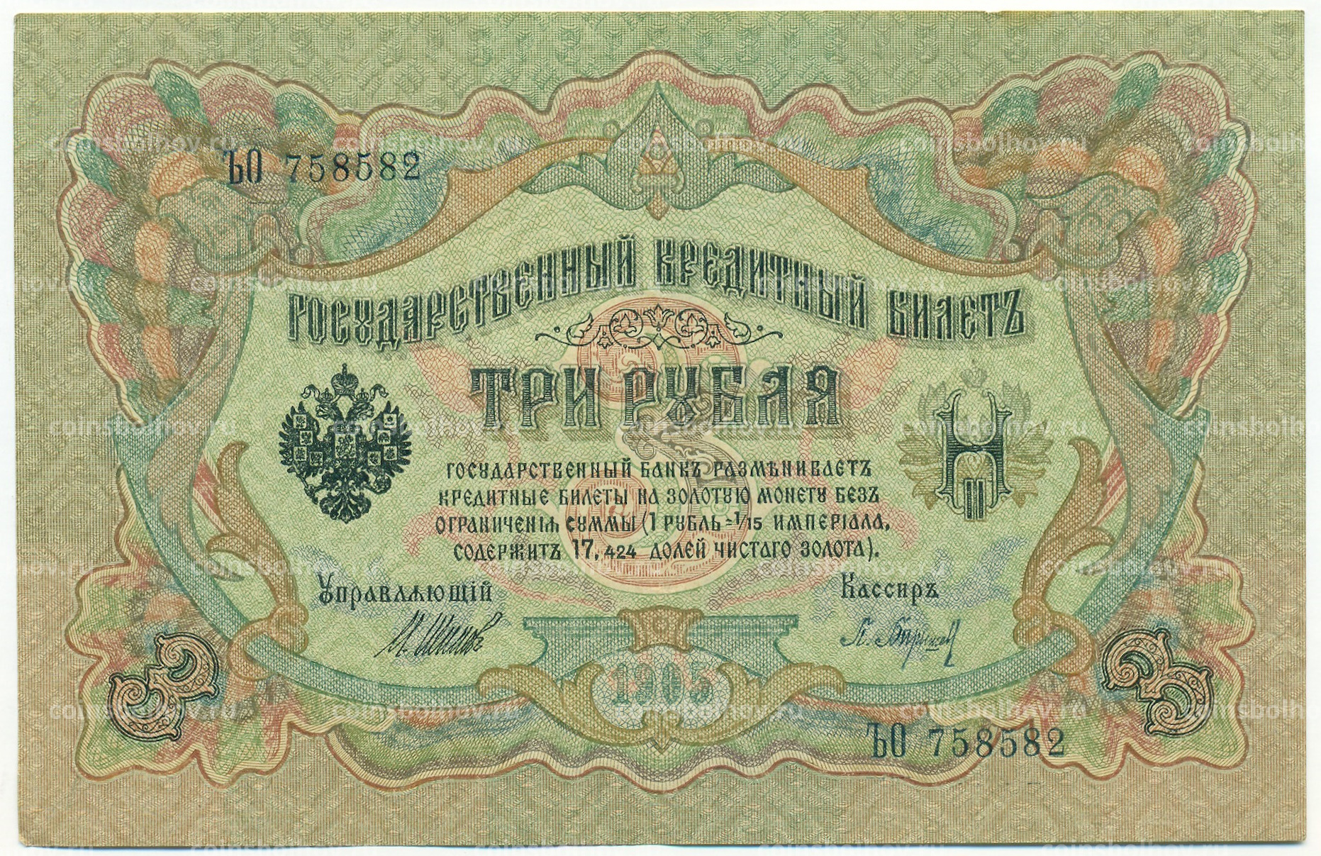 Банкнота 3 рубля 1905 года Шипов / Барышев