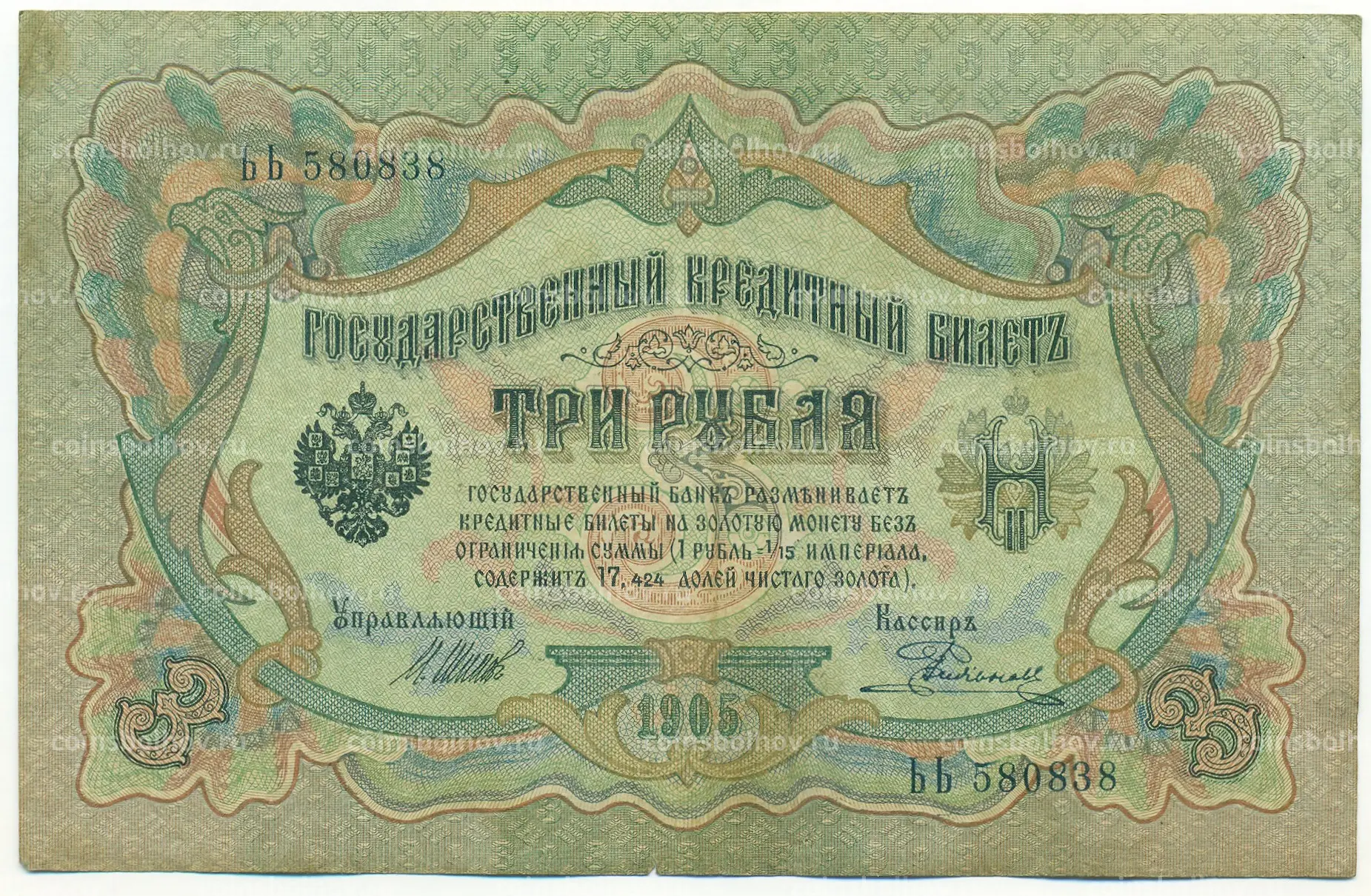 Банкнота 3 рубля 1905 года Шипов / Родионов