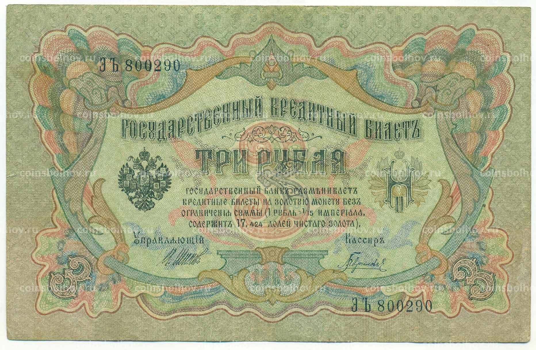 Банкнота 3 рубля 1905 года Шипов / Гаврилов