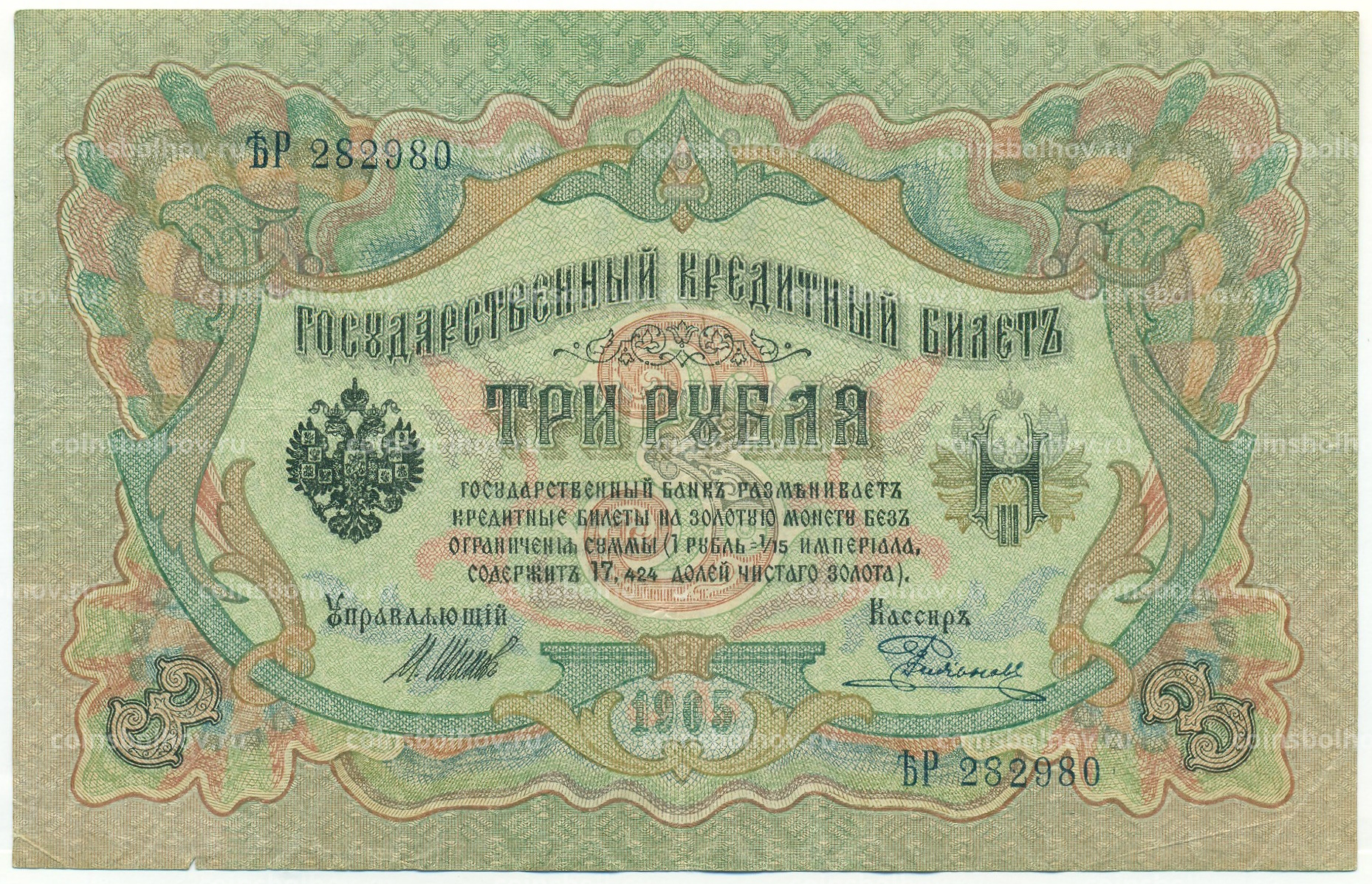 Банкнота 3 рубля 1905 года Шипов / Родионов