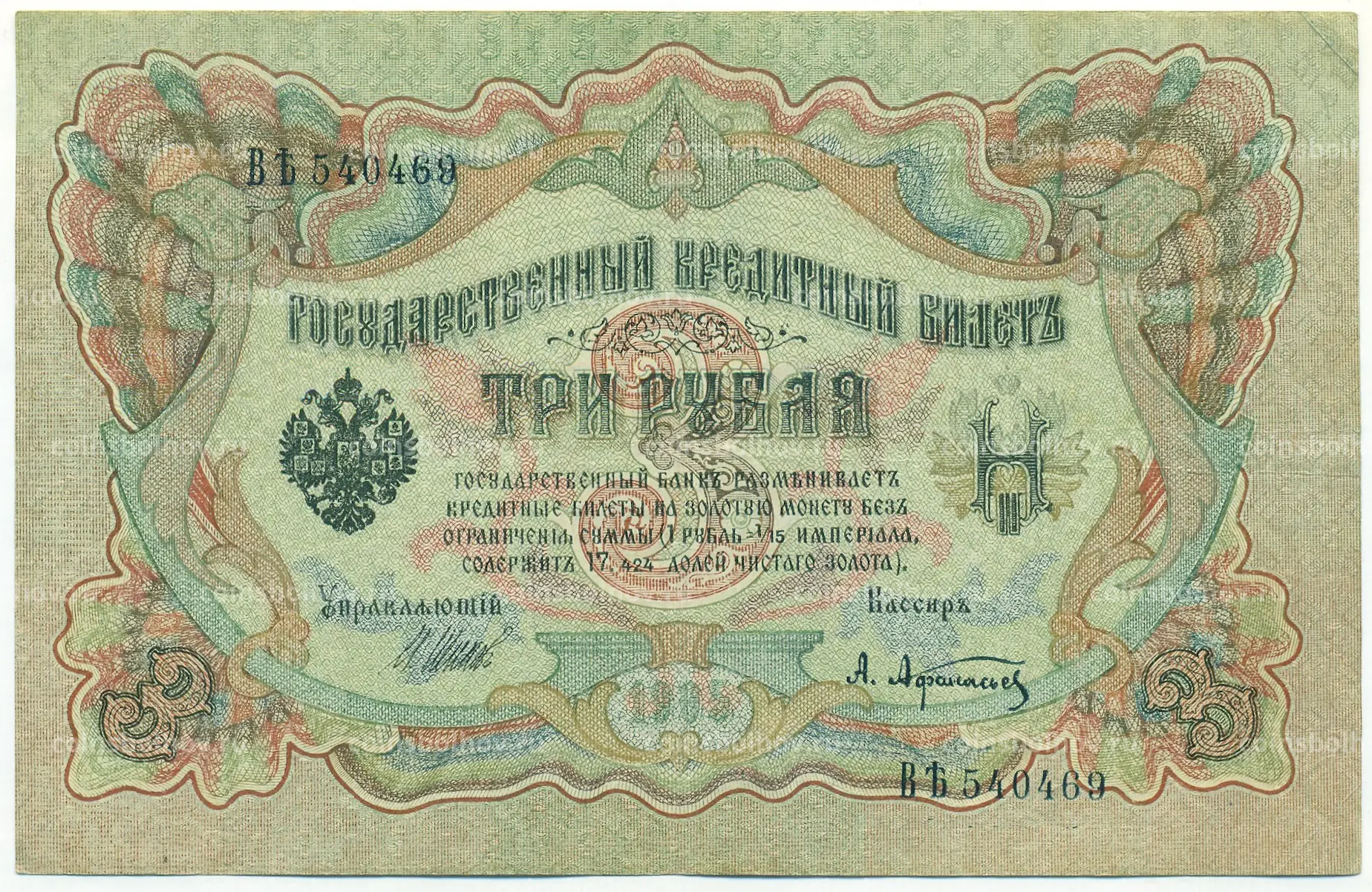Банкнота 3 рубля 1905 года Шипов / Афанасьев