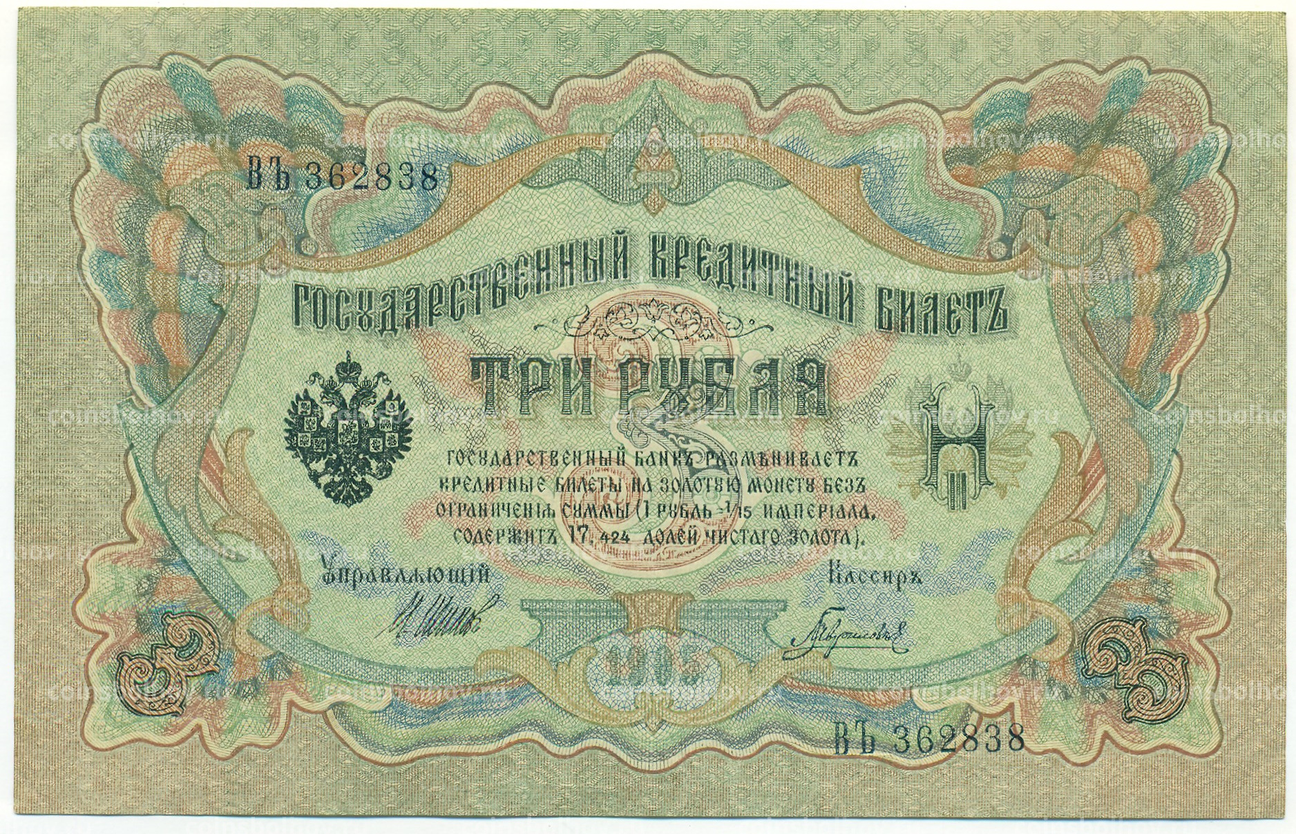 Банкнота 3 рубля 1905 года Шипов / Гаврилов