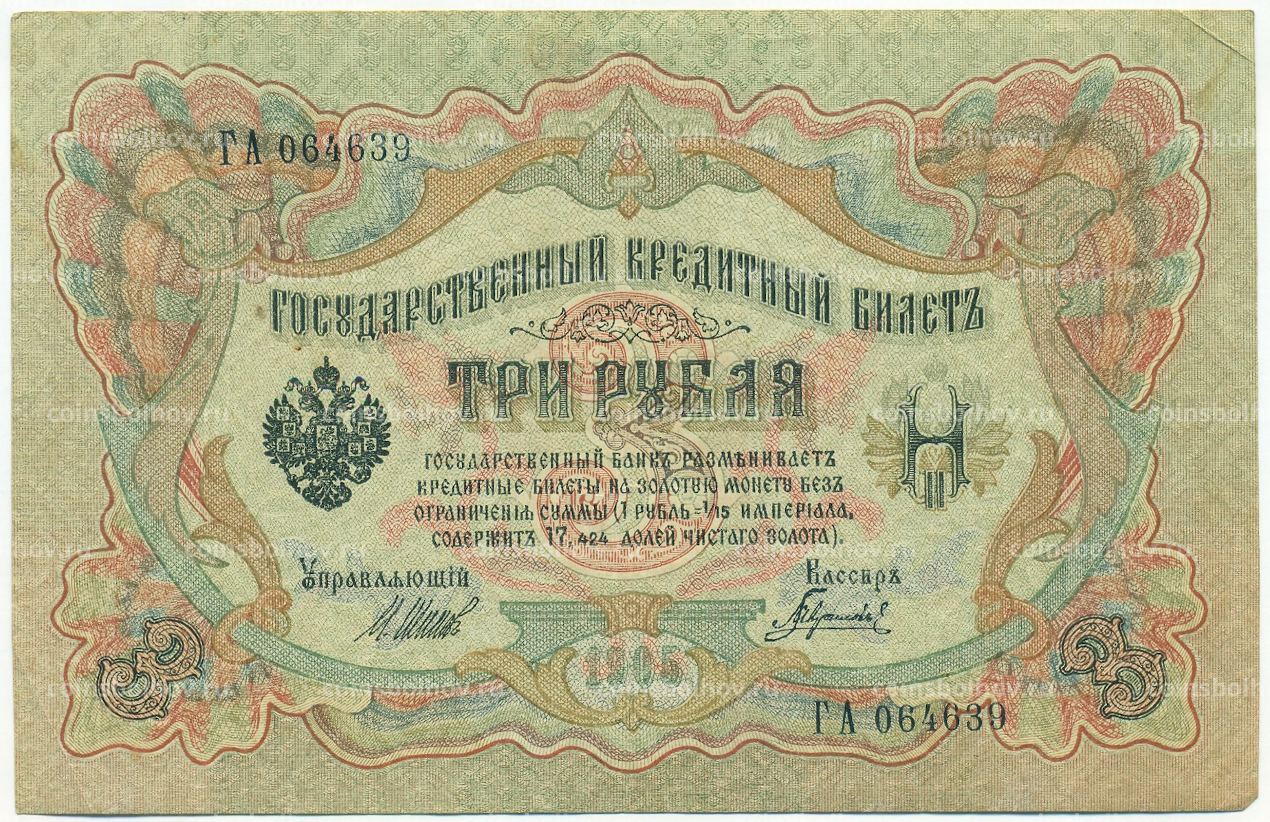 Банкнота 3 рубля 1905 года Шипов / Гаврилов
