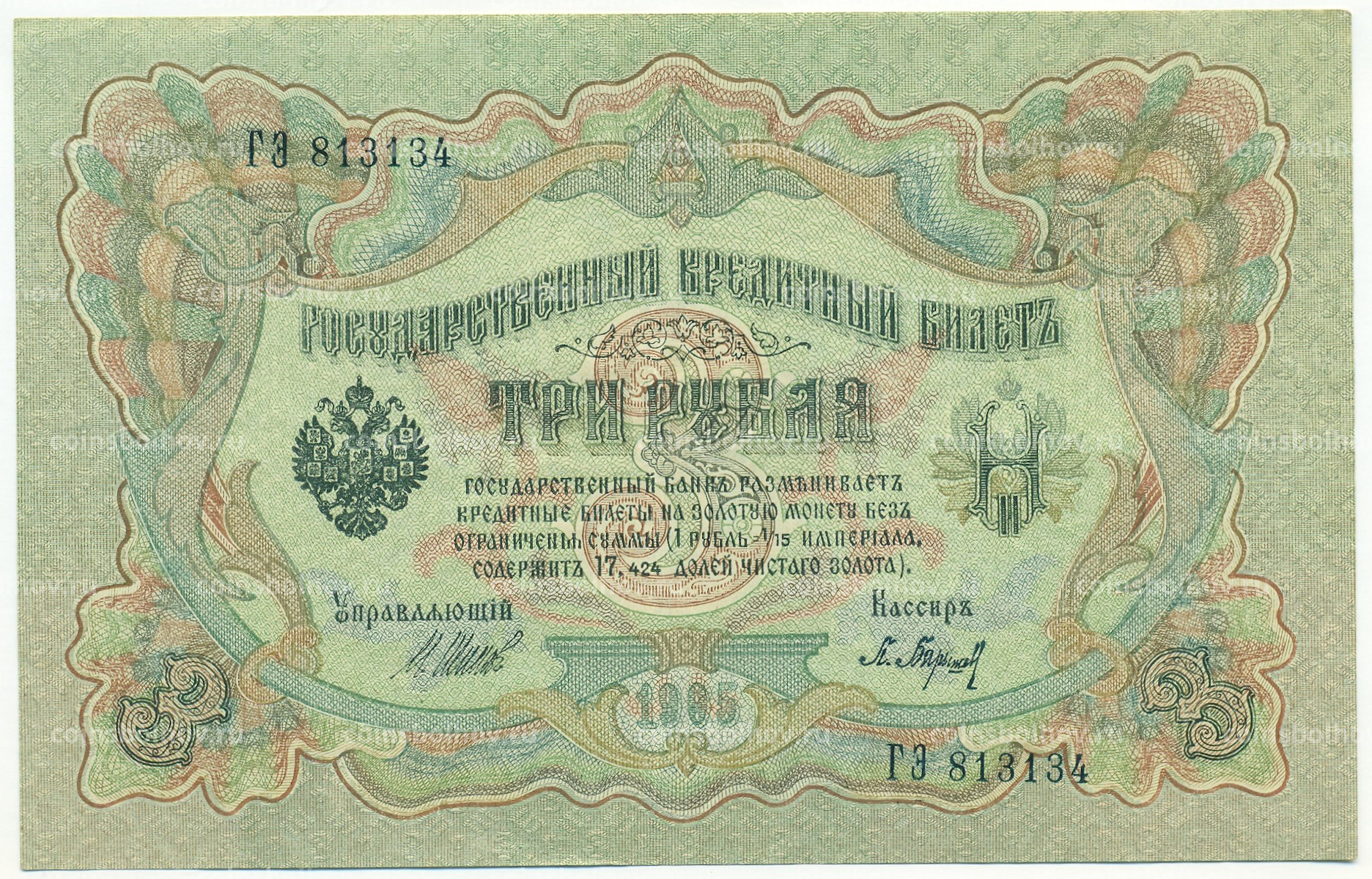 Банкнота 3 рубля 1905 года Шипов / Барышев