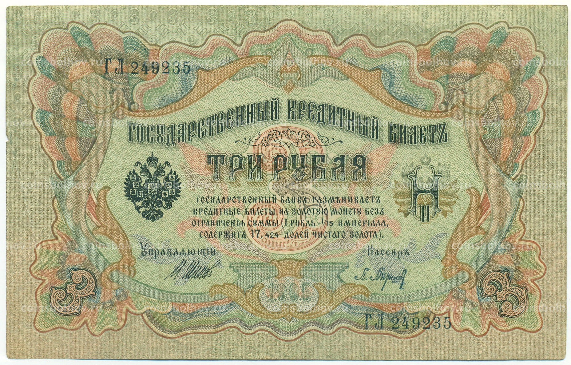 Банкнота 3 рубля 1905 года Шипов / Барышев