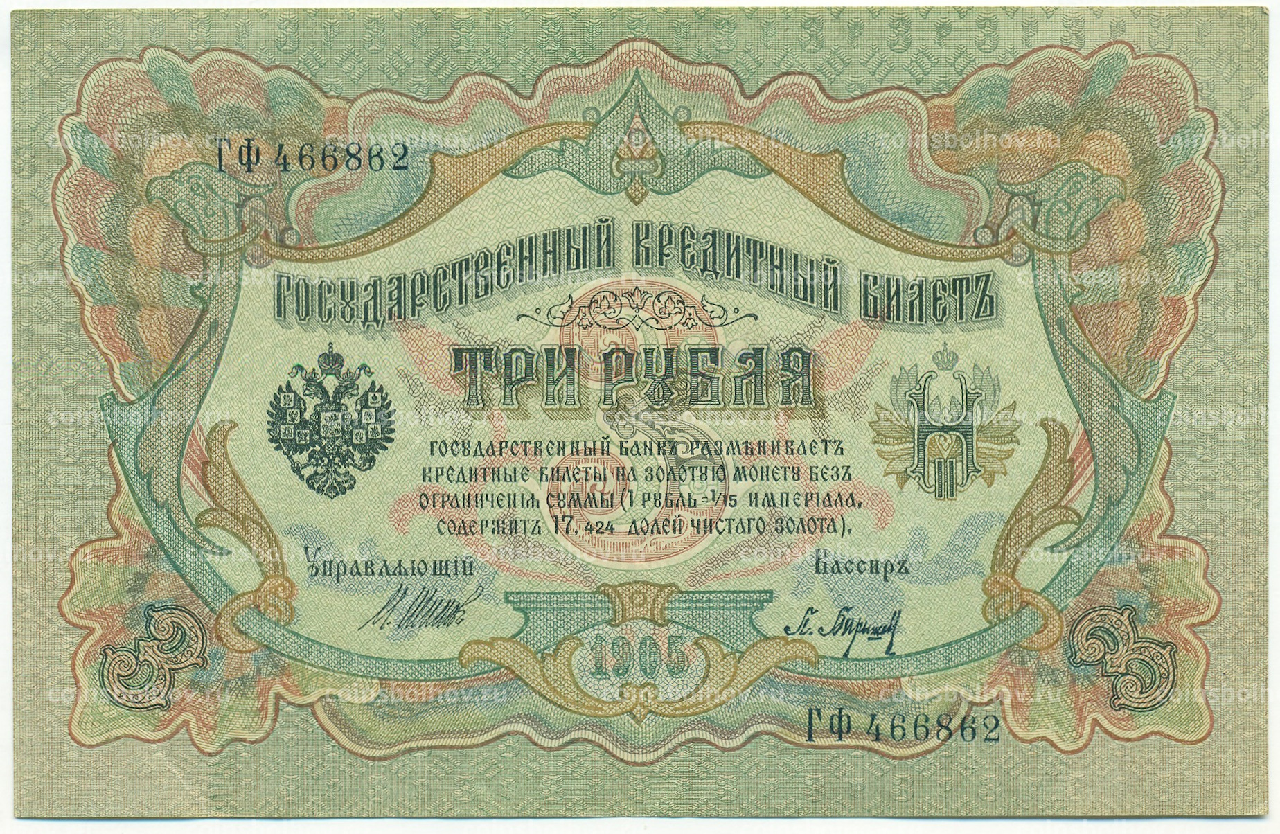 Банкнота 3 рубля 1905 года Шипов / Барышев