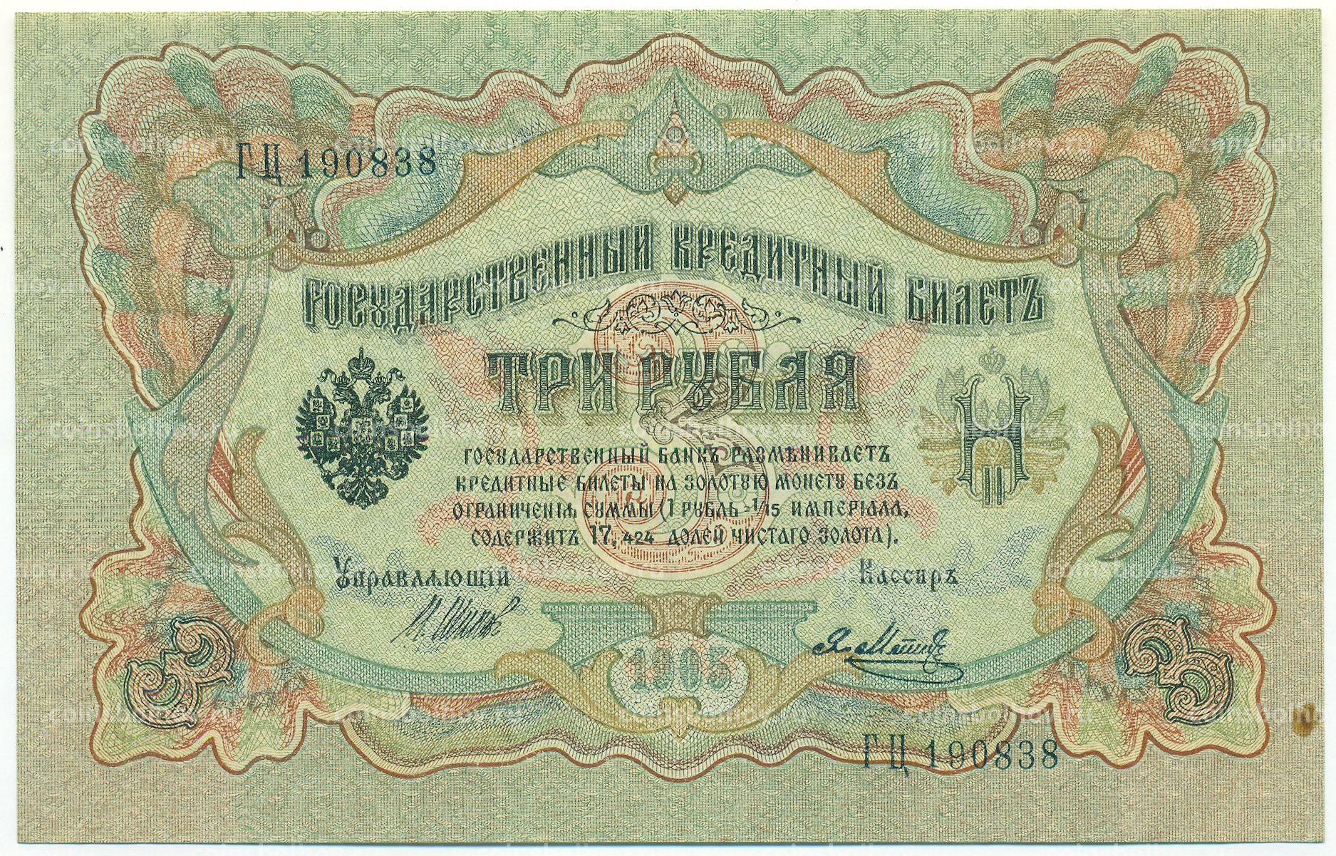 Банкнота 3 рубля 1905 года Шипов / Метц