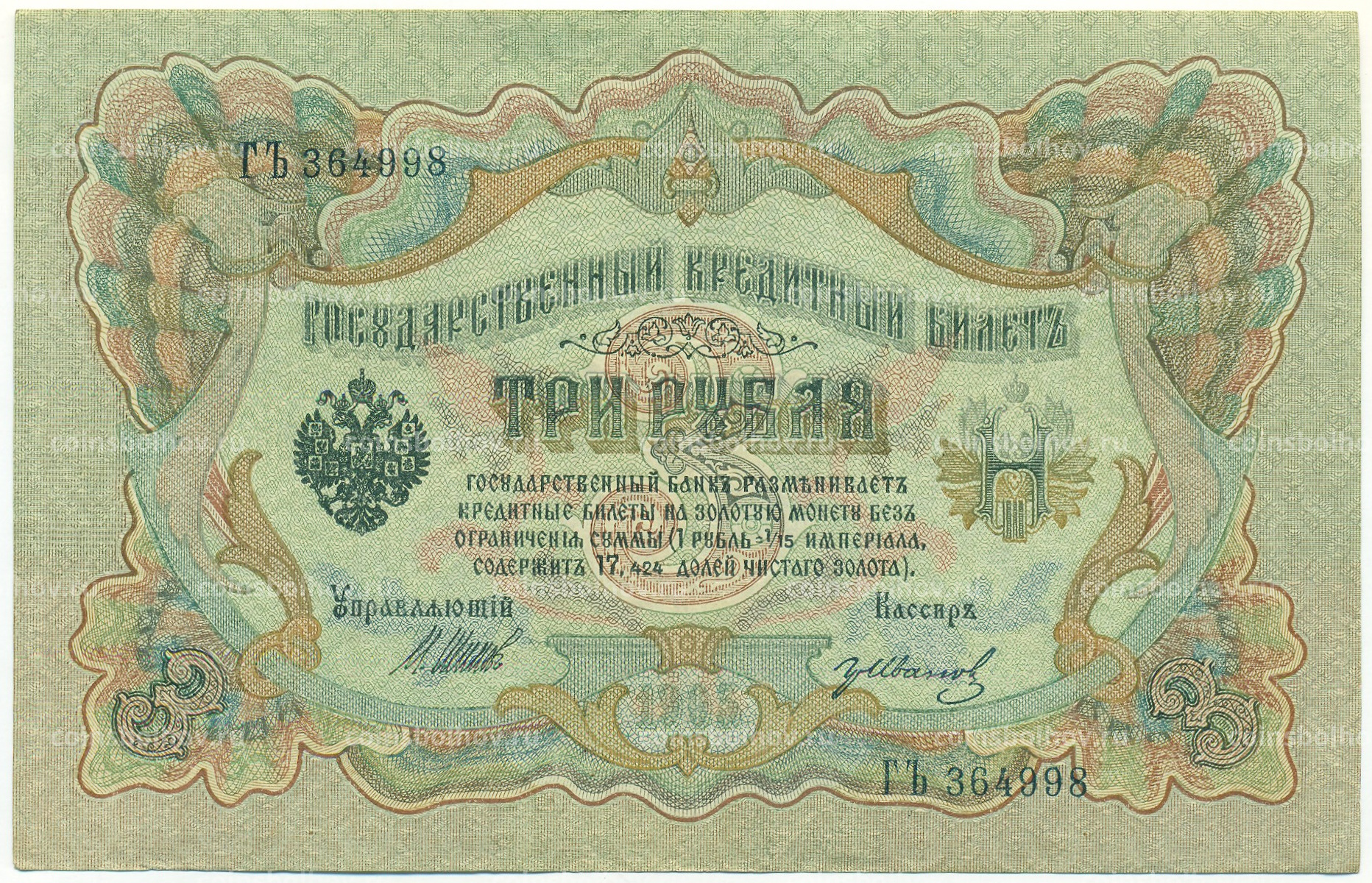 Банкнота 3 рубля 1905 года Шипов / Иванов