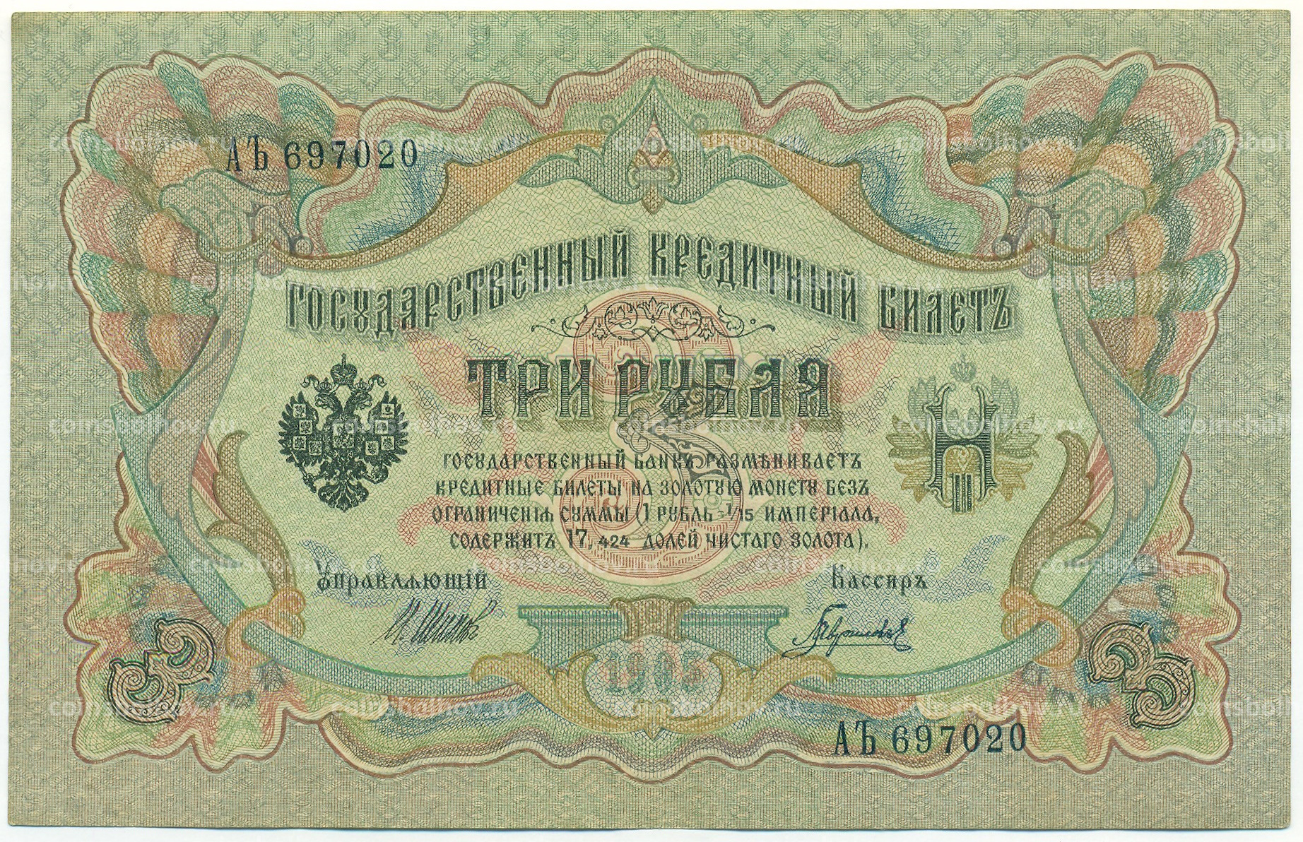 Банкнота 3 рубля 1905 года Шипов / Гаврилов