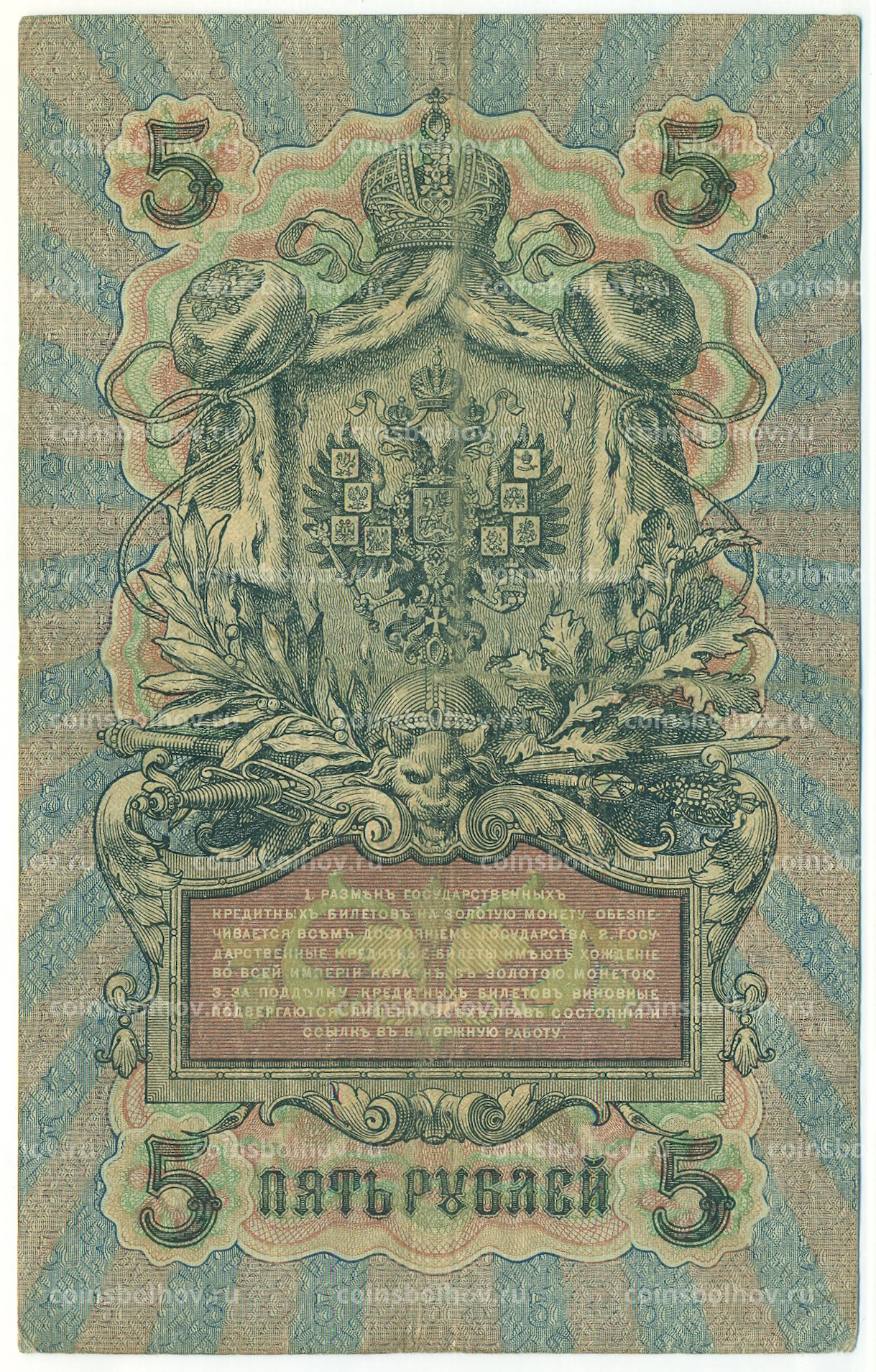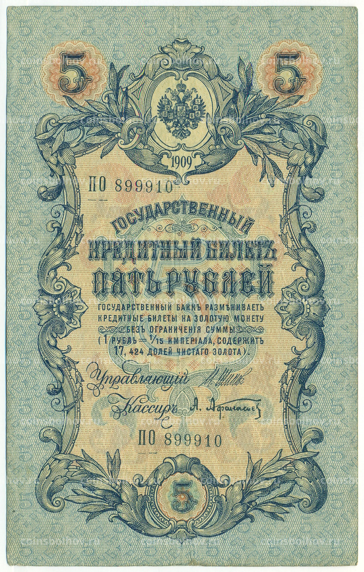 Банкнота 5 рублей 1909 года Шипов / Афанасьев