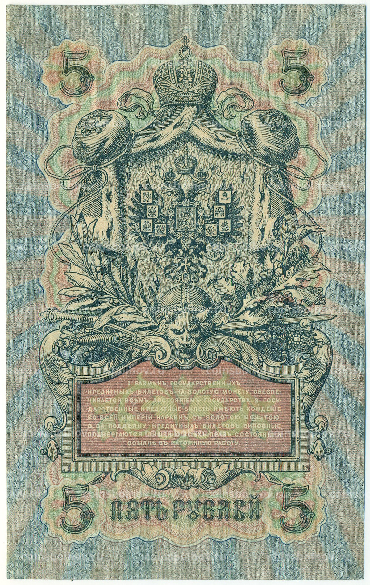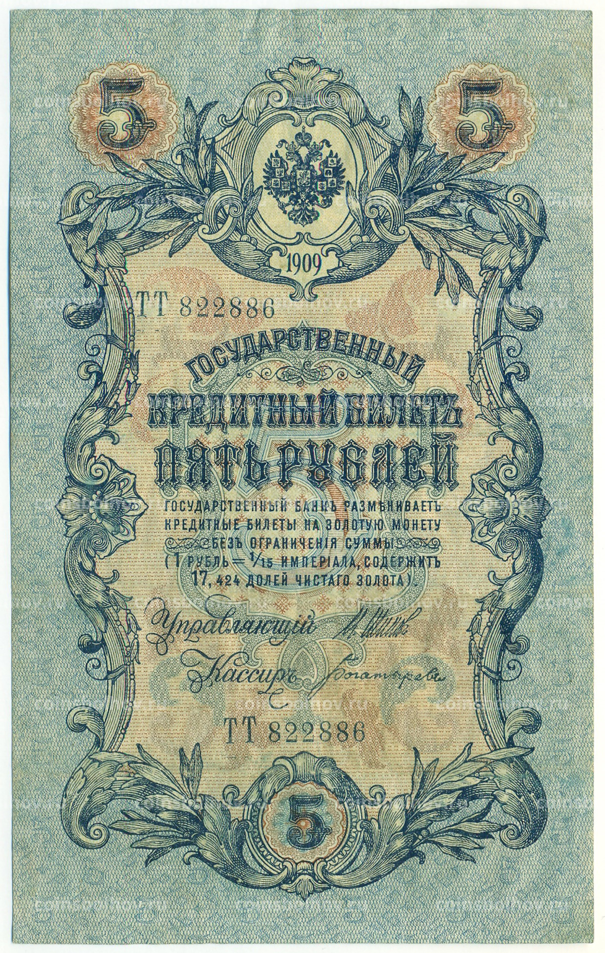 Банкнота 5 рублей 1909 года Шипов / Богатырев
