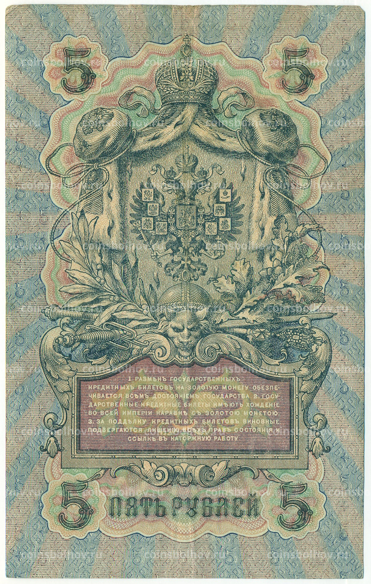Банкнота 5 рублей 1909 года Шипов / Богатырев
