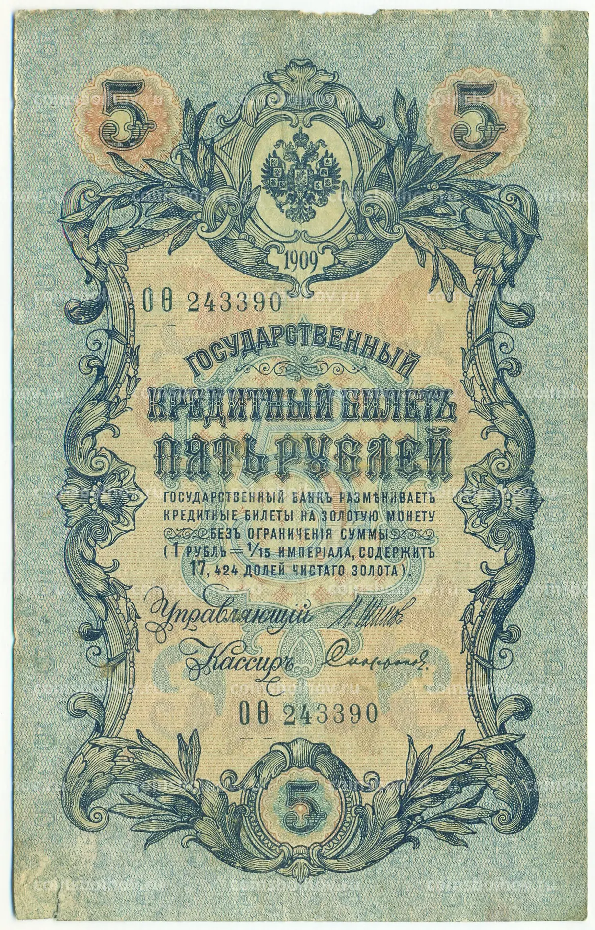 Банкнота 5 рублей 1909 года Шипов / Софронов