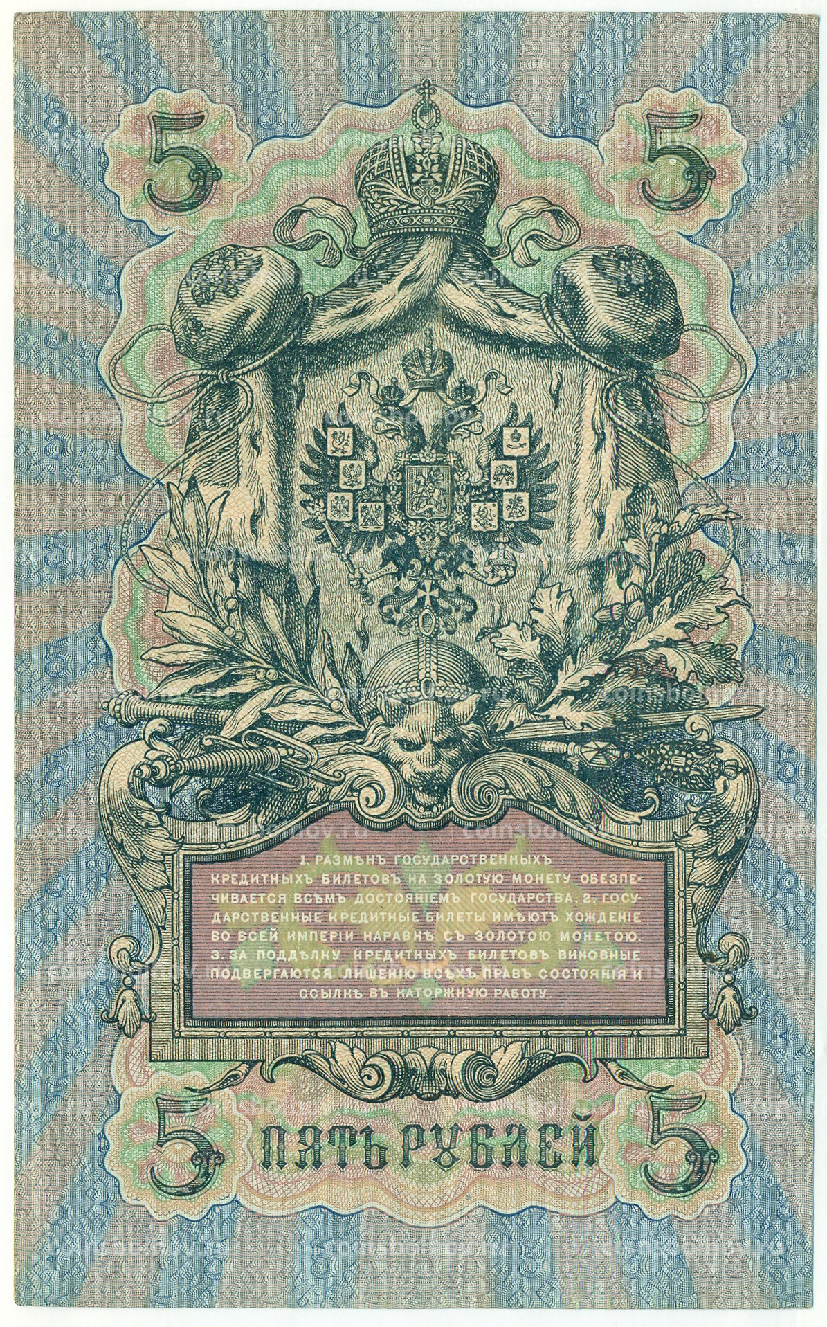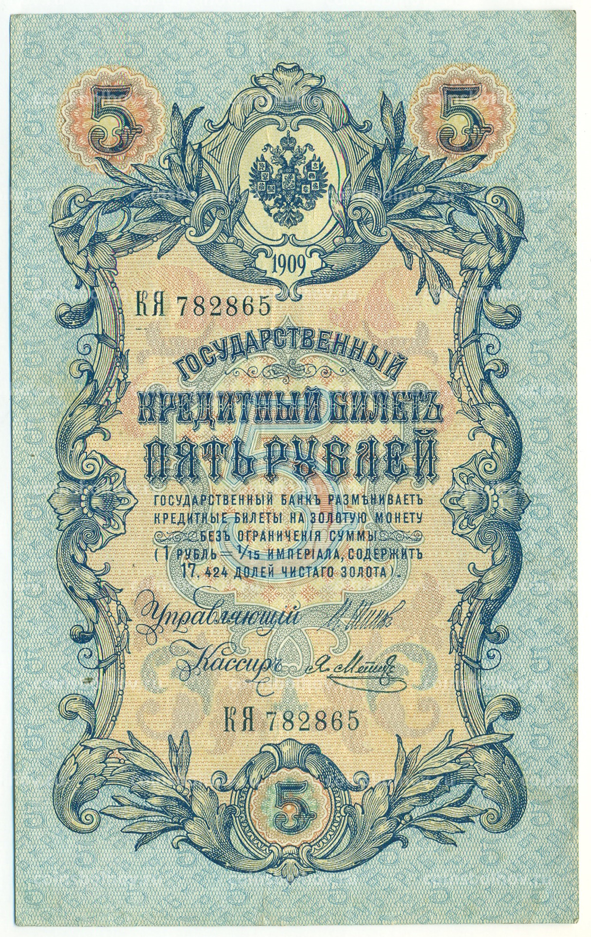 Банкнота 5 рублей 1909 года Шипов / Метц