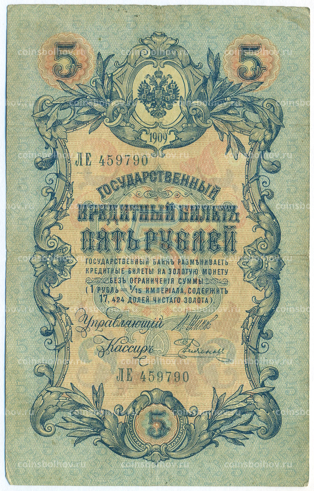 Банкнота 5 рублей 1909 года Шипов / Родионов