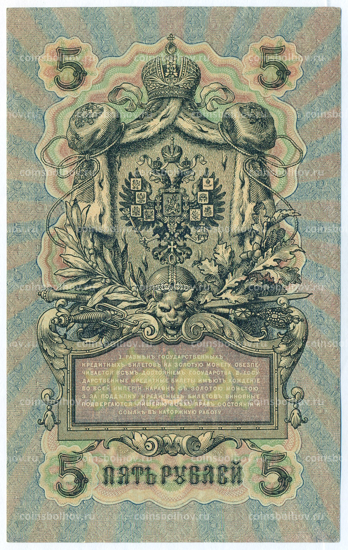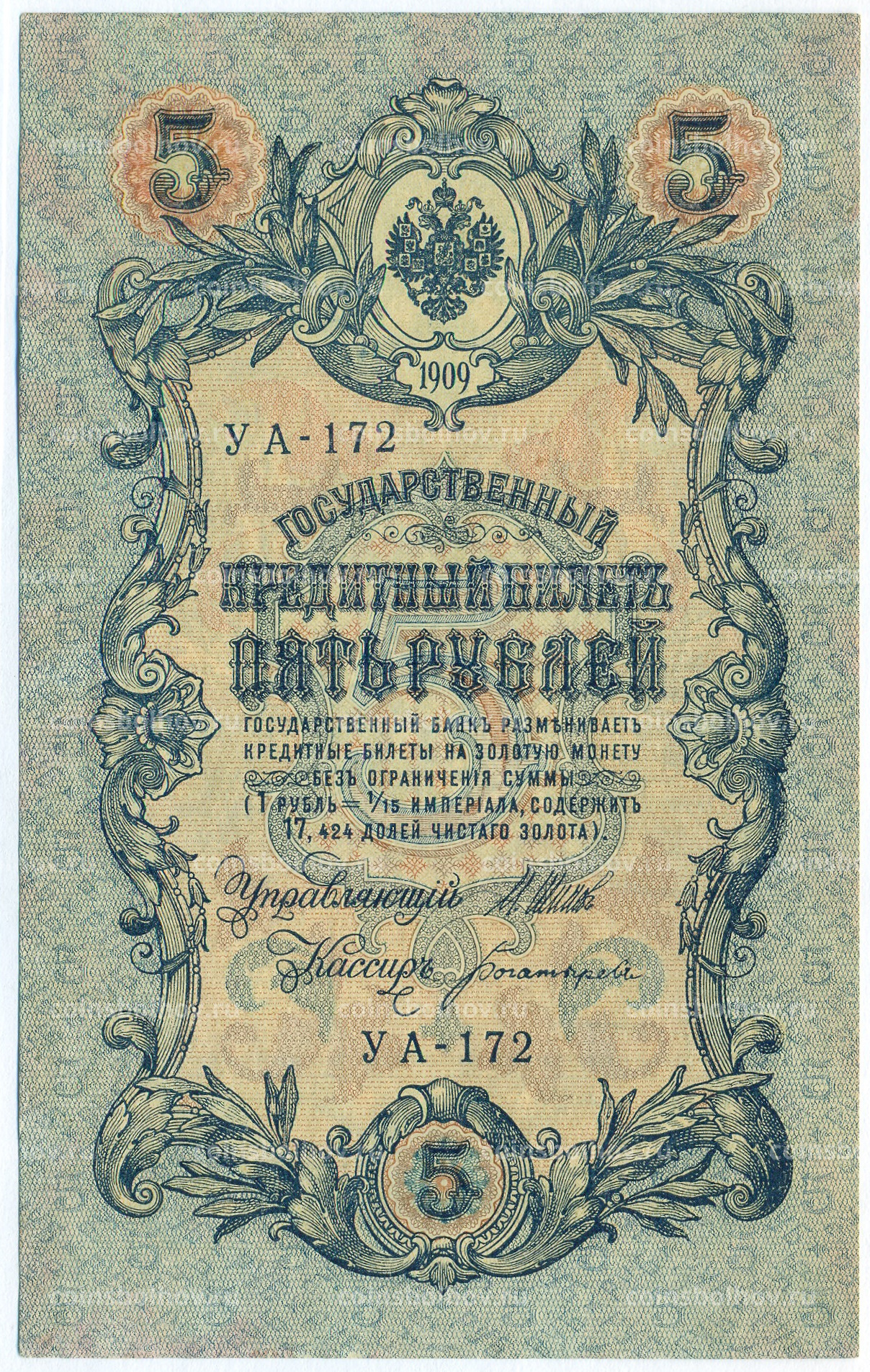 Банкнота 5 рублей 1909 года Шипов / Богатырев