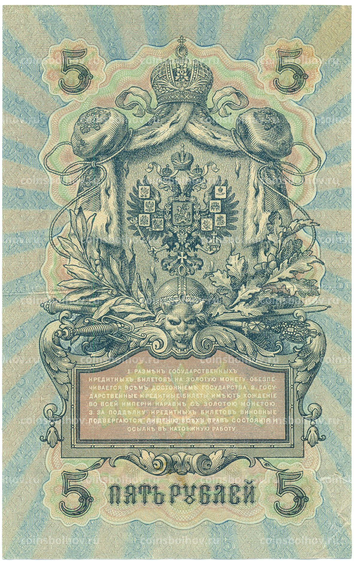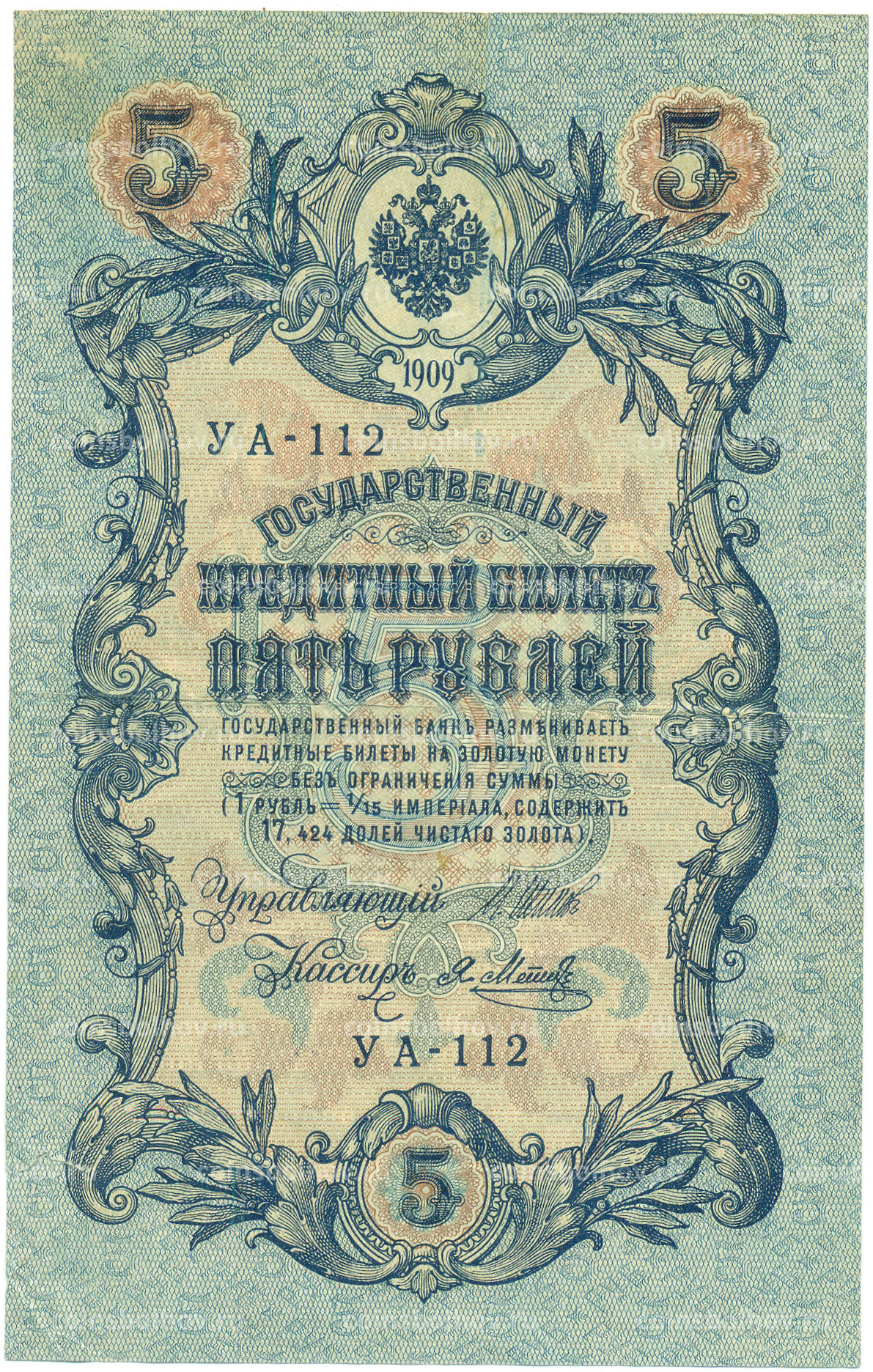 Банкнота 5 рублей 1909 года Шипов / Метц