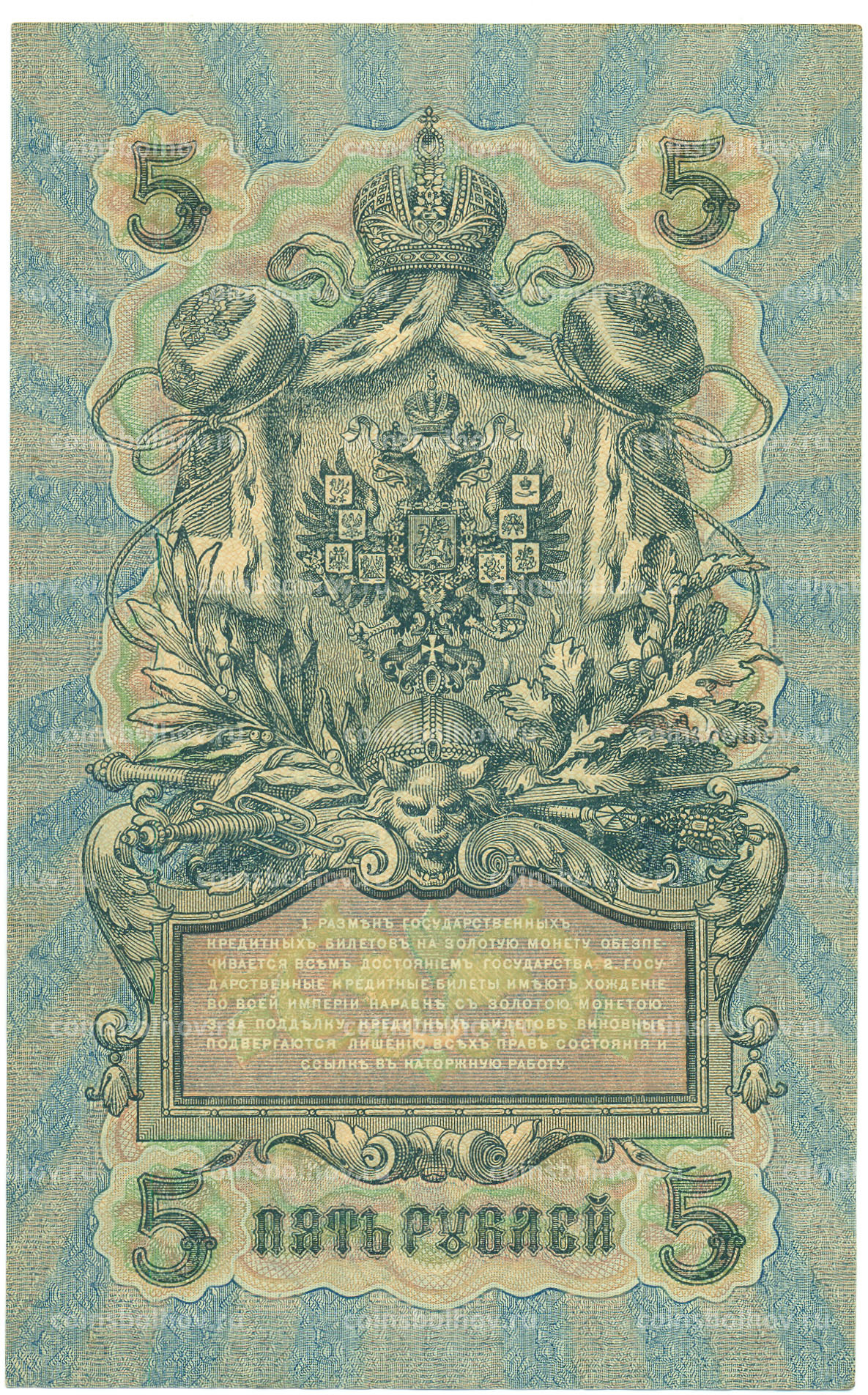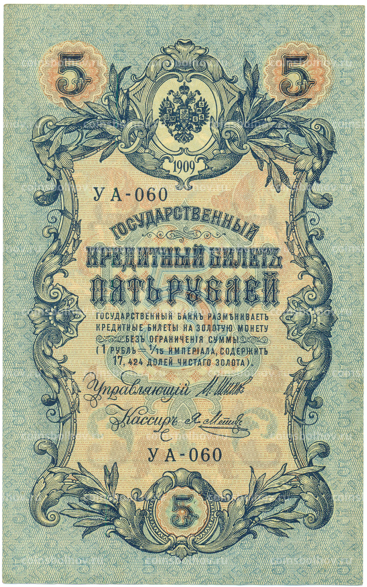 Банкнота 5 рублей 1909 года Шипов / Метц