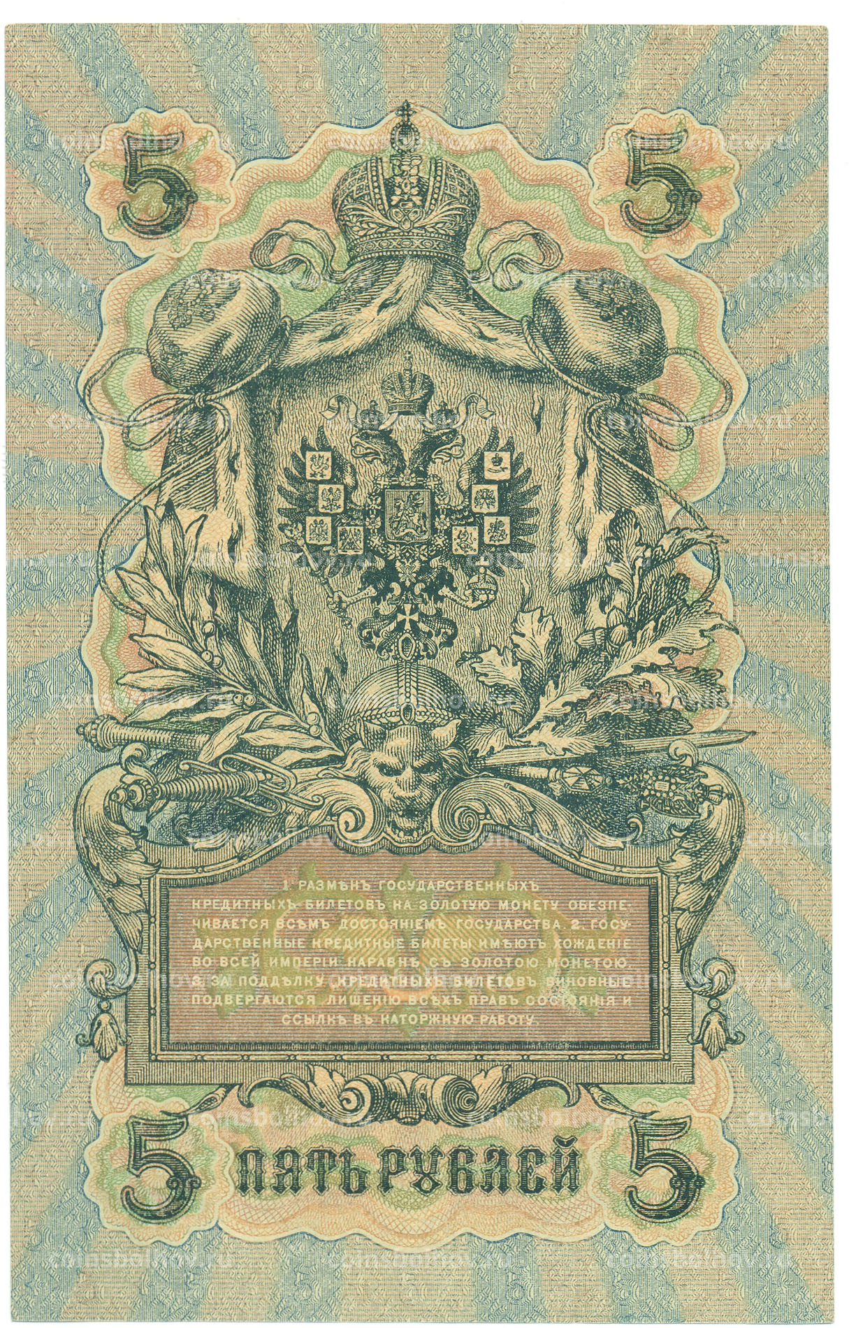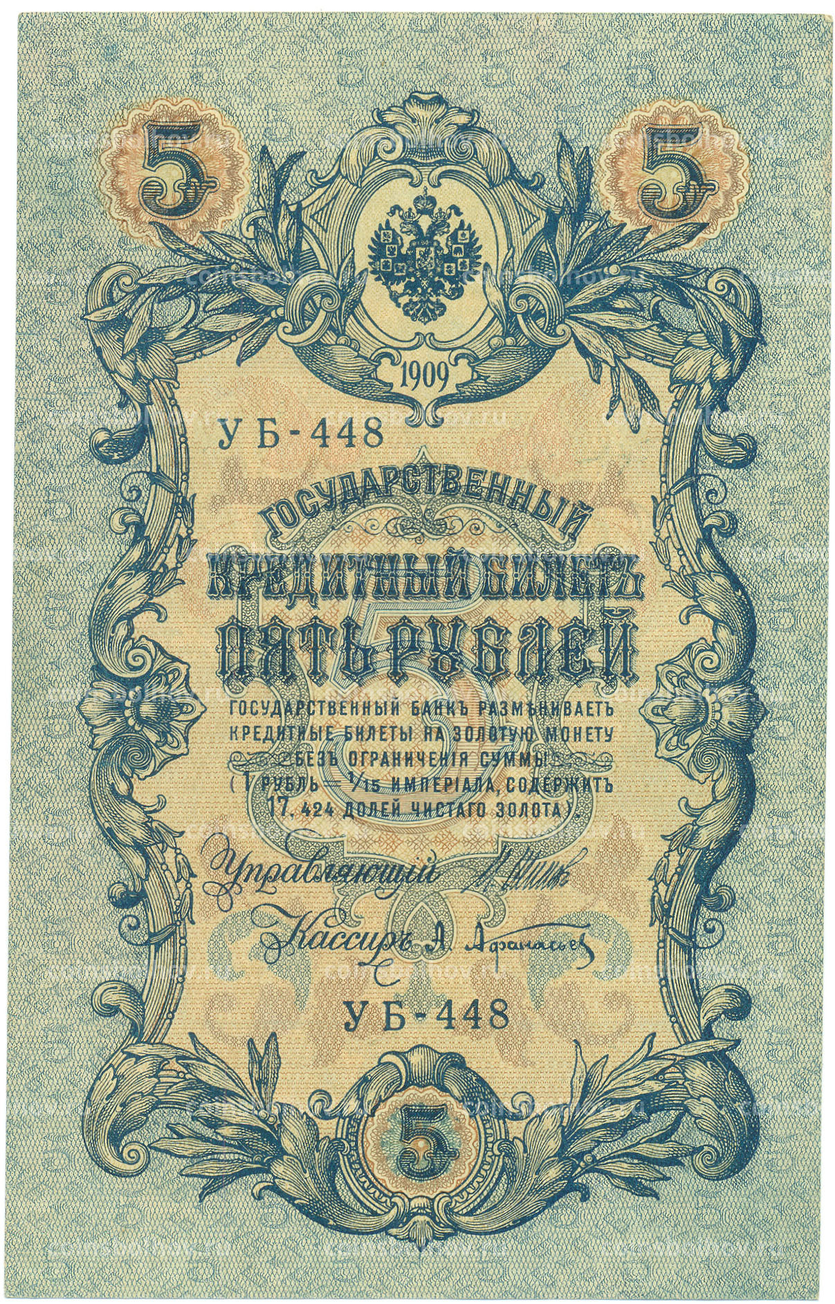 Банкнота 5 рублей 1909 года Шипов / Афанасьев