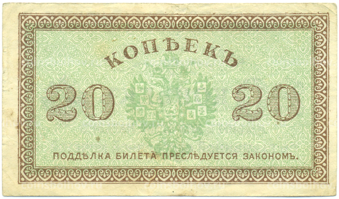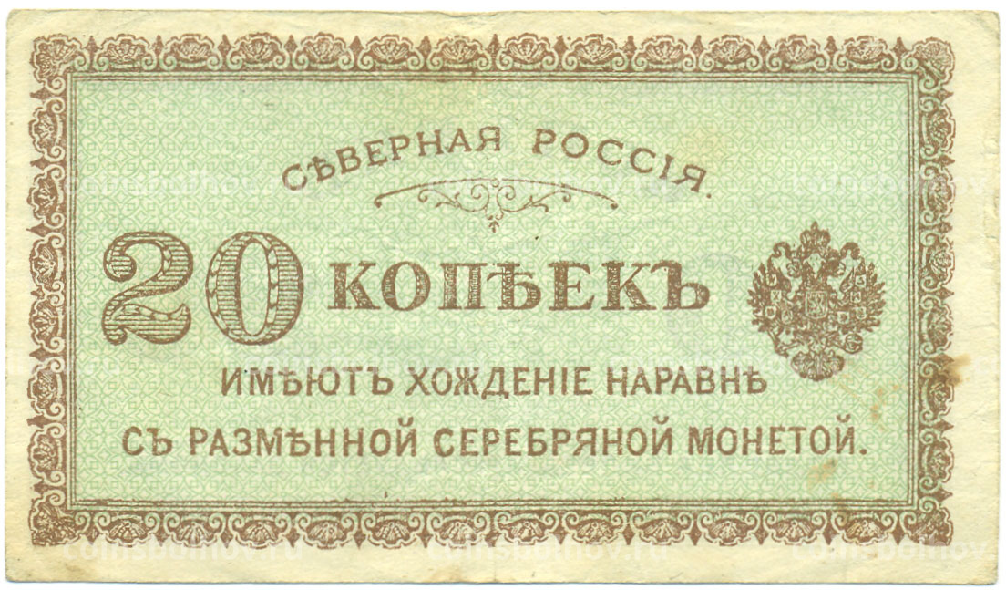 Банкнота 20 копеек 1919 года Северная Россия