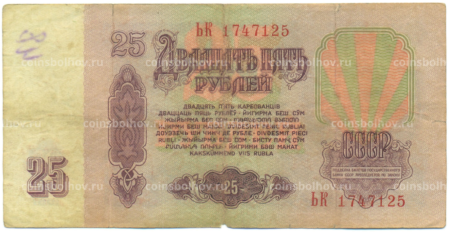 Банкнота 25 рублей 1961 года