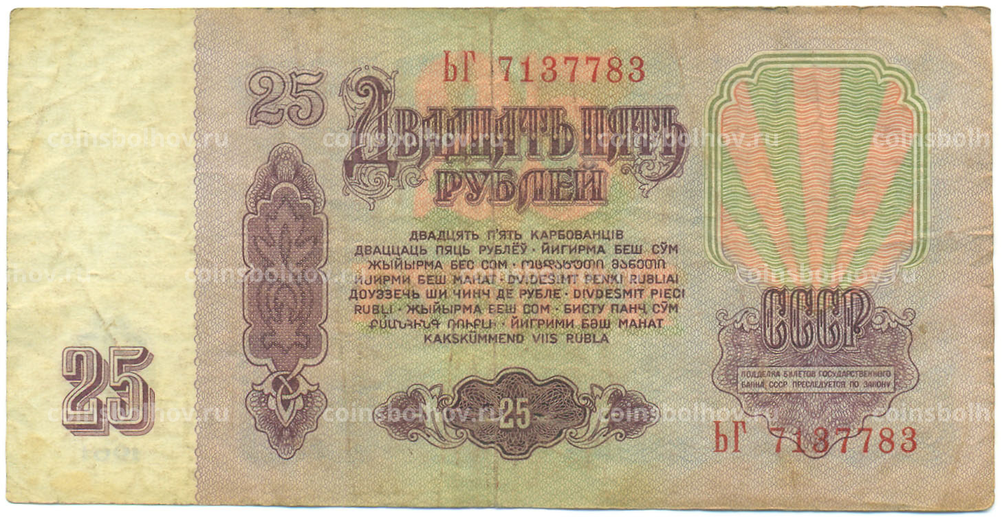 Банкнота 25 рублей 1961 года