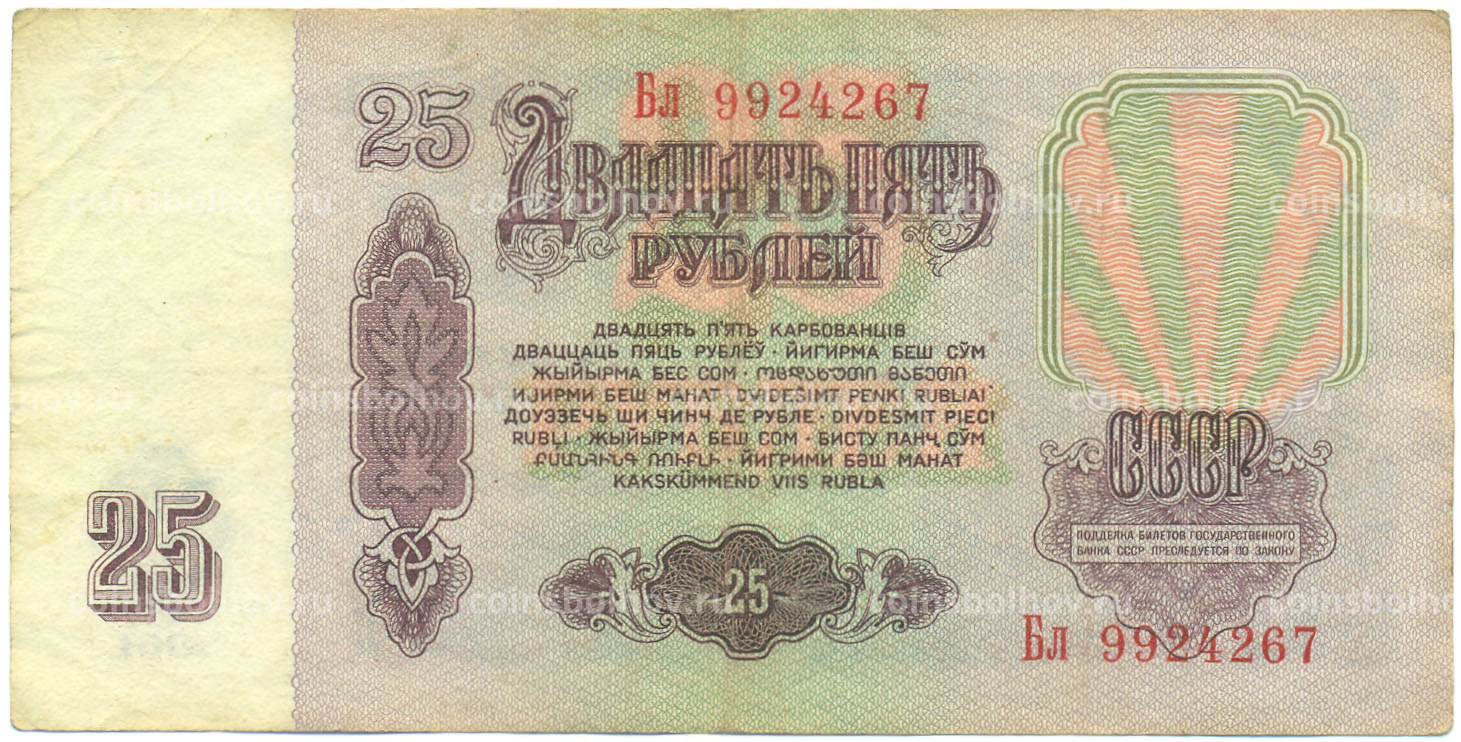 Банкнота 25 рублей 1961 года