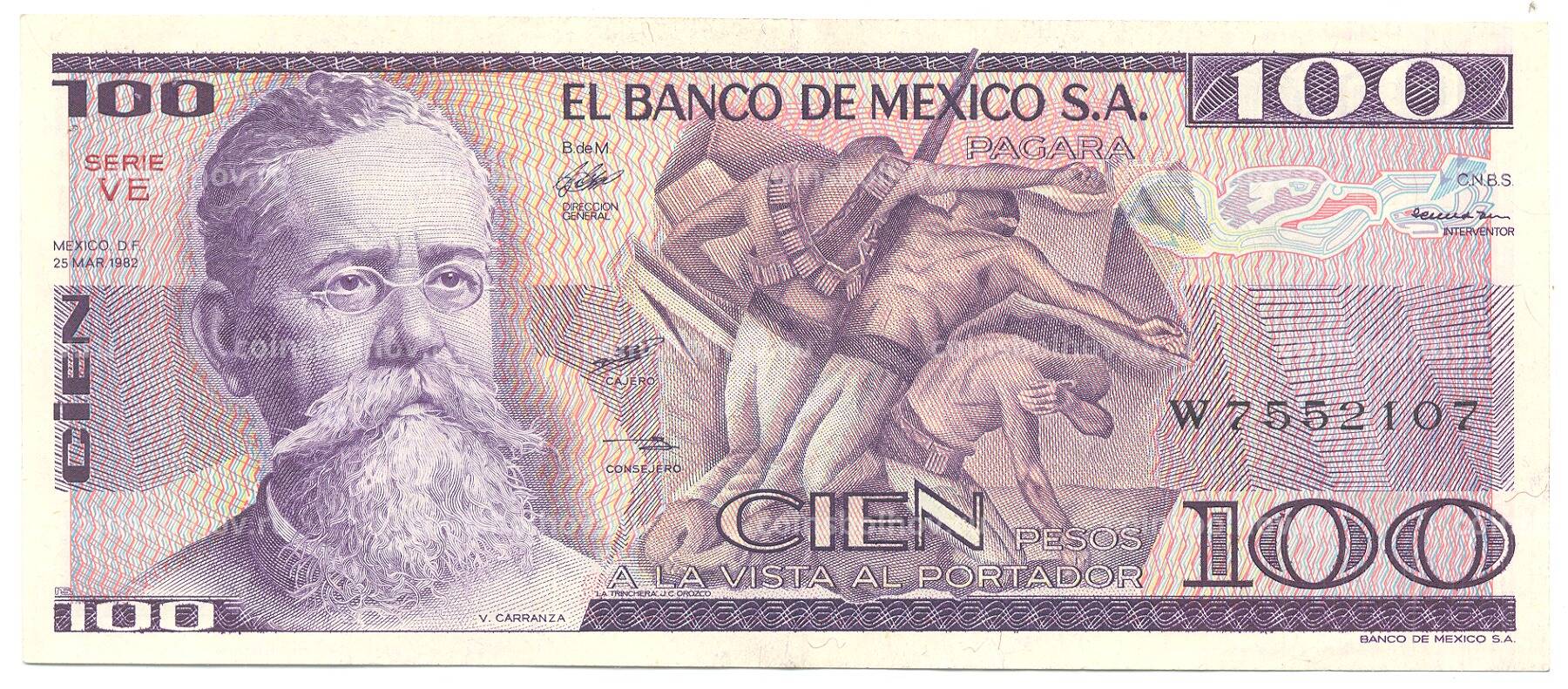 100 песо 1982 года Мексика