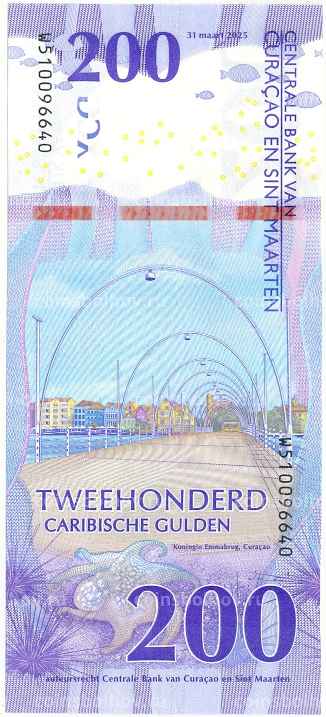 Банкнота 200 гульденов 2025 года Кюрасао и Сен-Мартен
