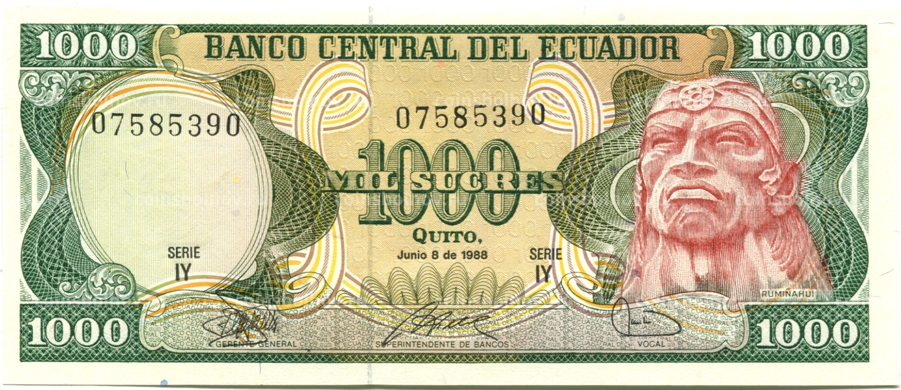 Банкнота 1000 сукре 1988 года Эквадор