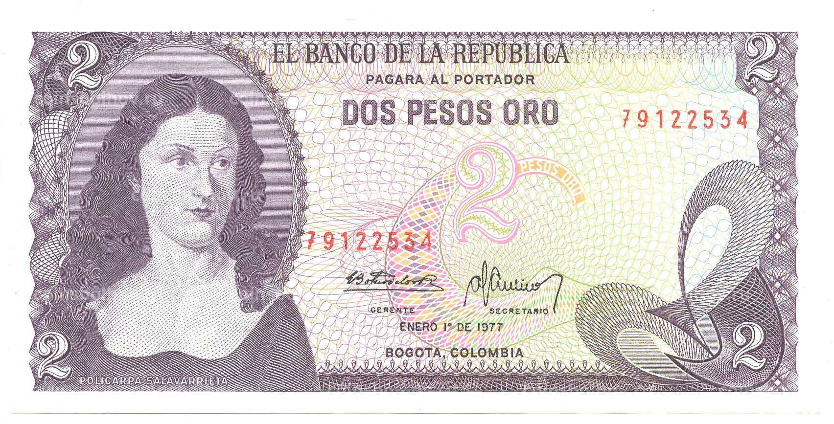 2 песо 1977 года Колумбия