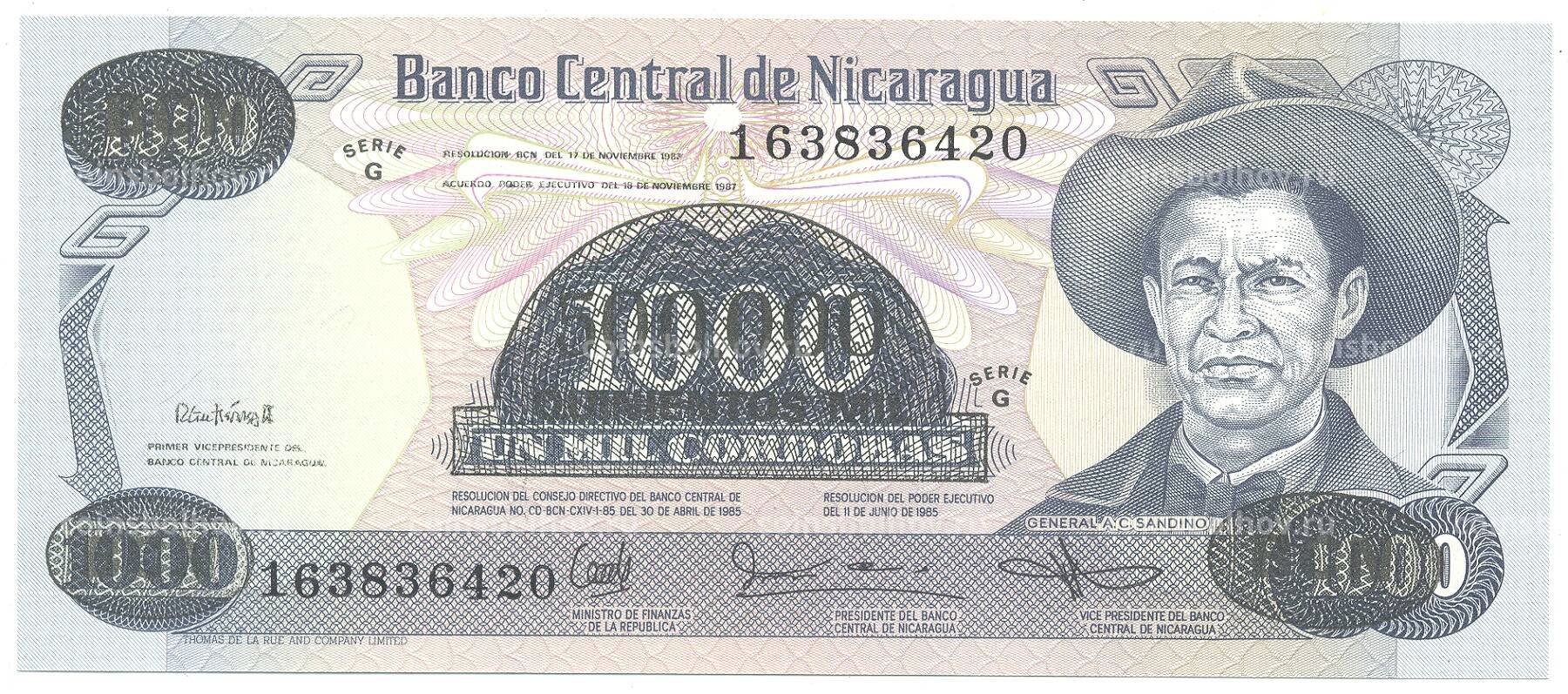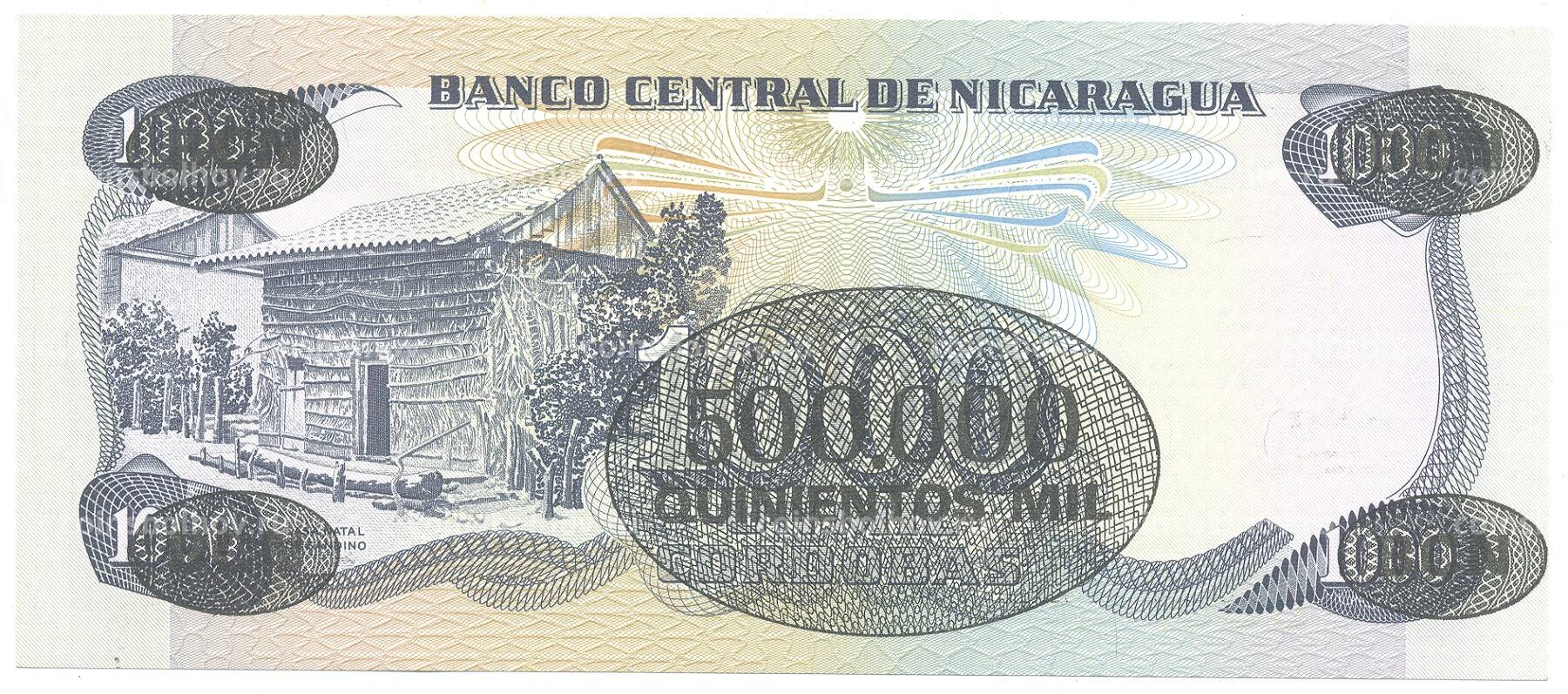 500000 кордоба 1987 года Никарагуа (надпечатка на банкноте 1000 кордоба 1985)