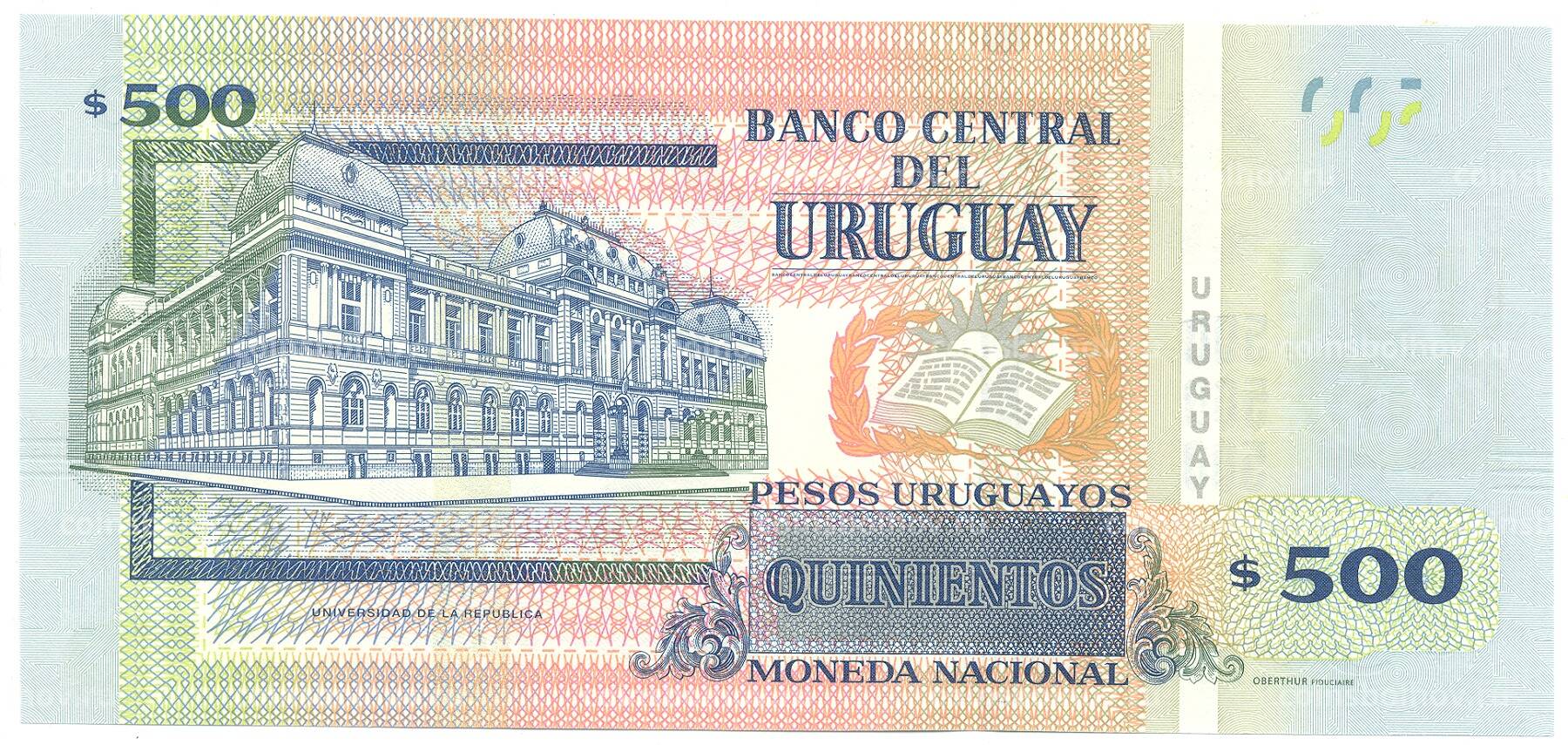 Банкнота 500 песо 1936 года Уругвай — Образец Банкнота 500 песо 1936 года Уругвай — Образец (вид 2)
